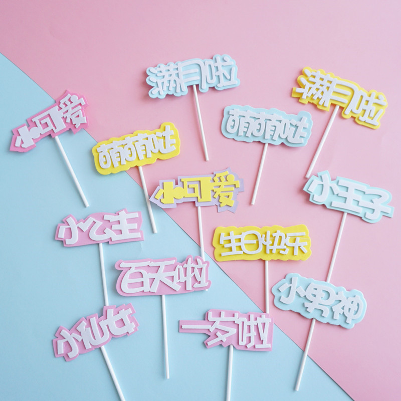蛋糕装饰插件 生日快乐小王子 小公主满月啦宝宝周岁生日蛋糕插旗