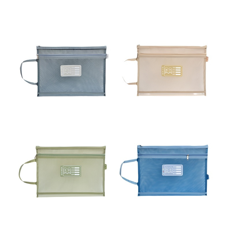 莫兰迪色学科科目分类文件袋A4网纱双层拉链作业袋小学生资料袋