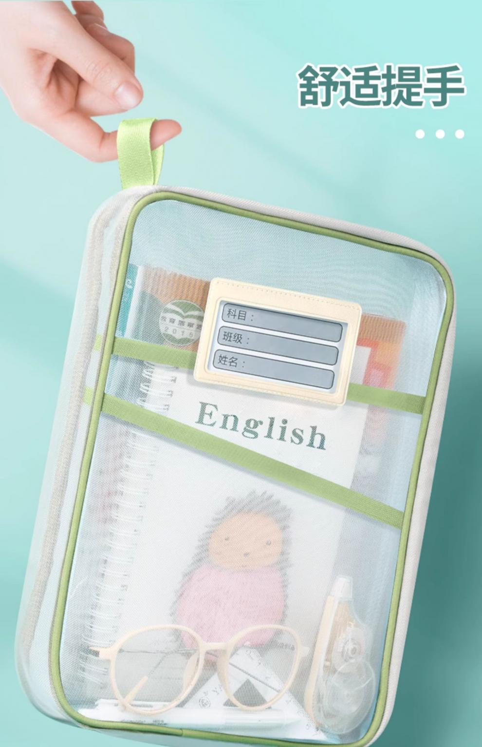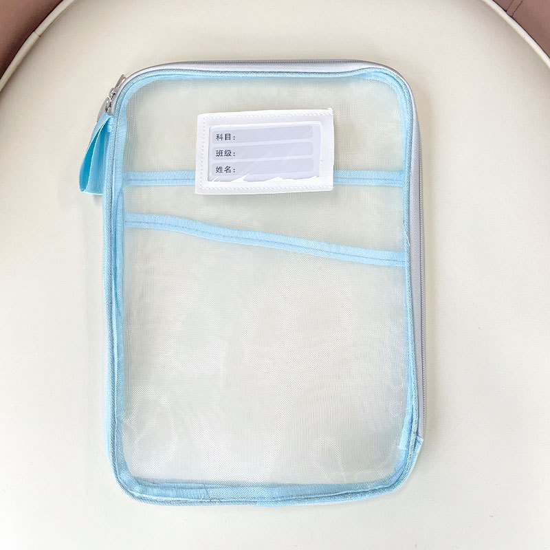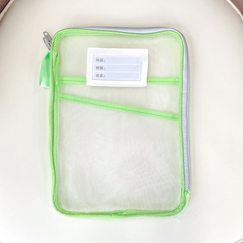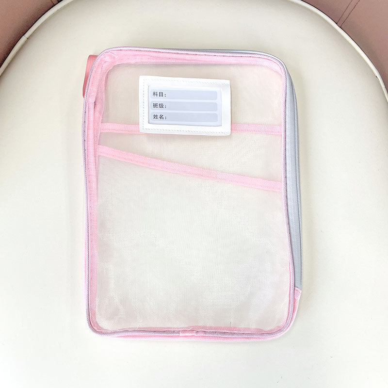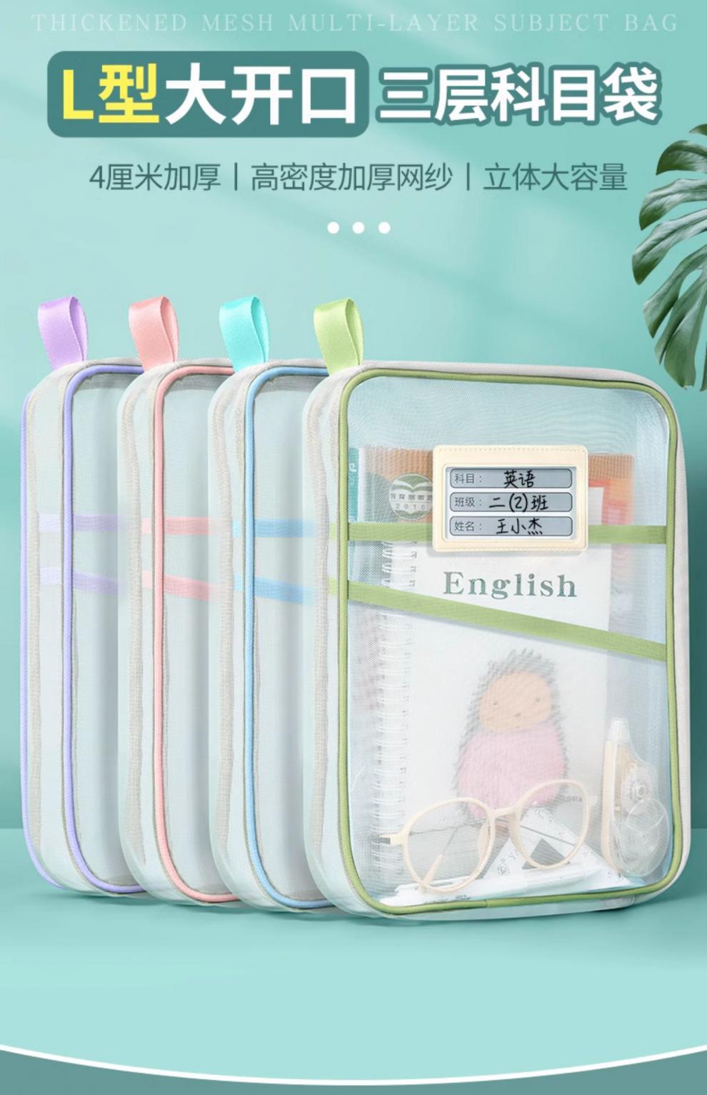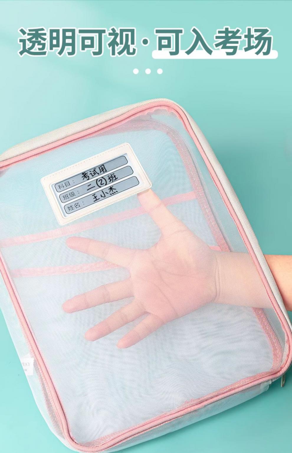 L型科目分类袋透明文件袋拉链式网纱大开口学生手提拎书袋考试用