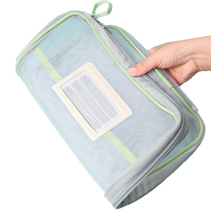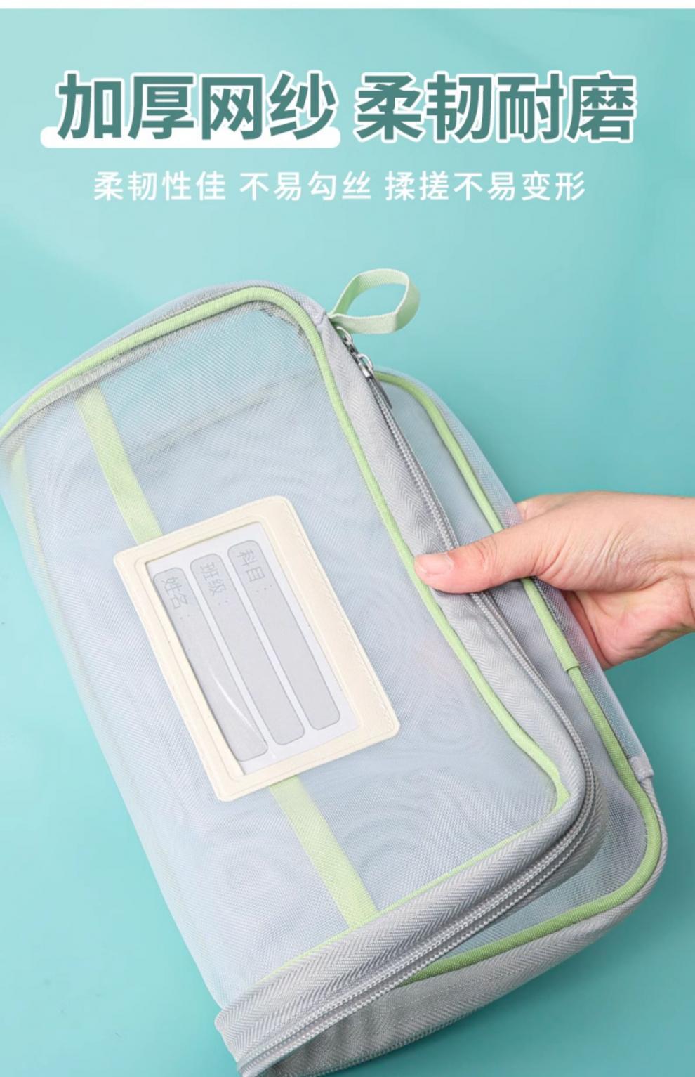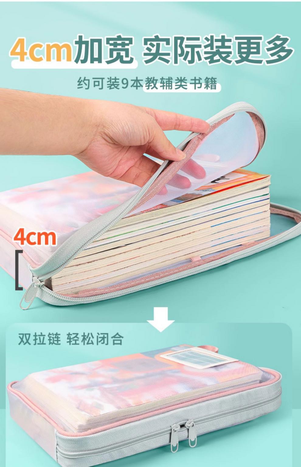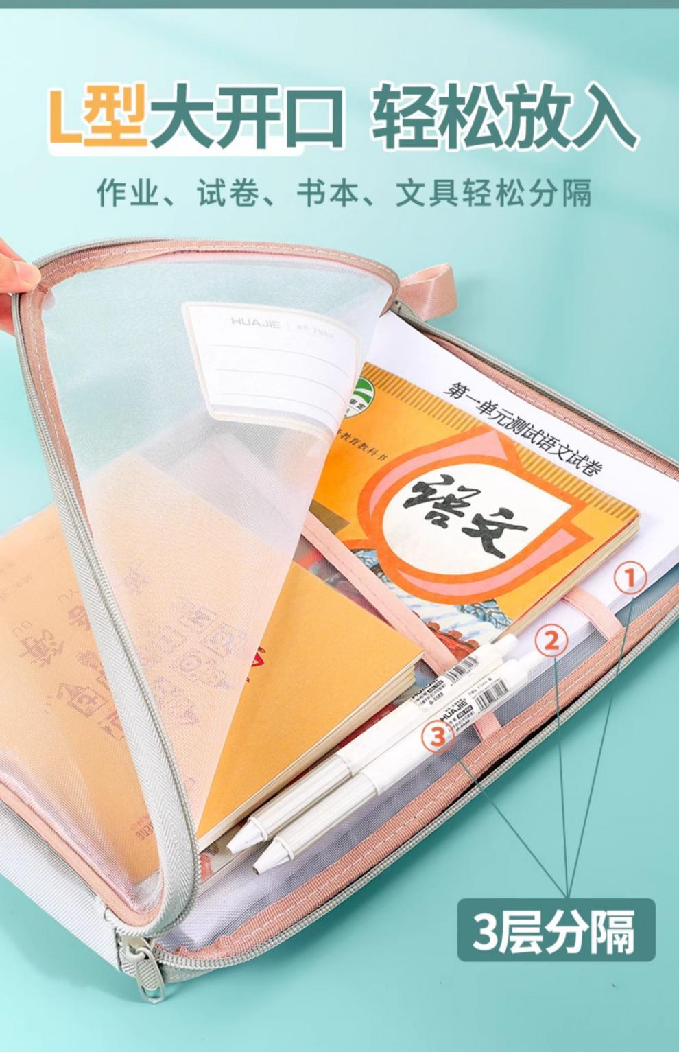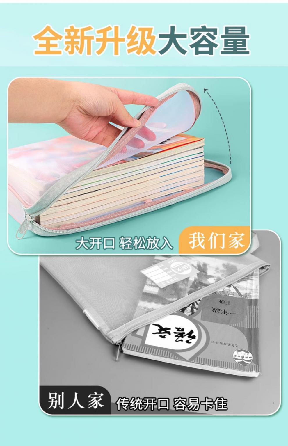 L型科目分类袋透明文件袋拉链式网纱大开口学生手提拎书袋考试用