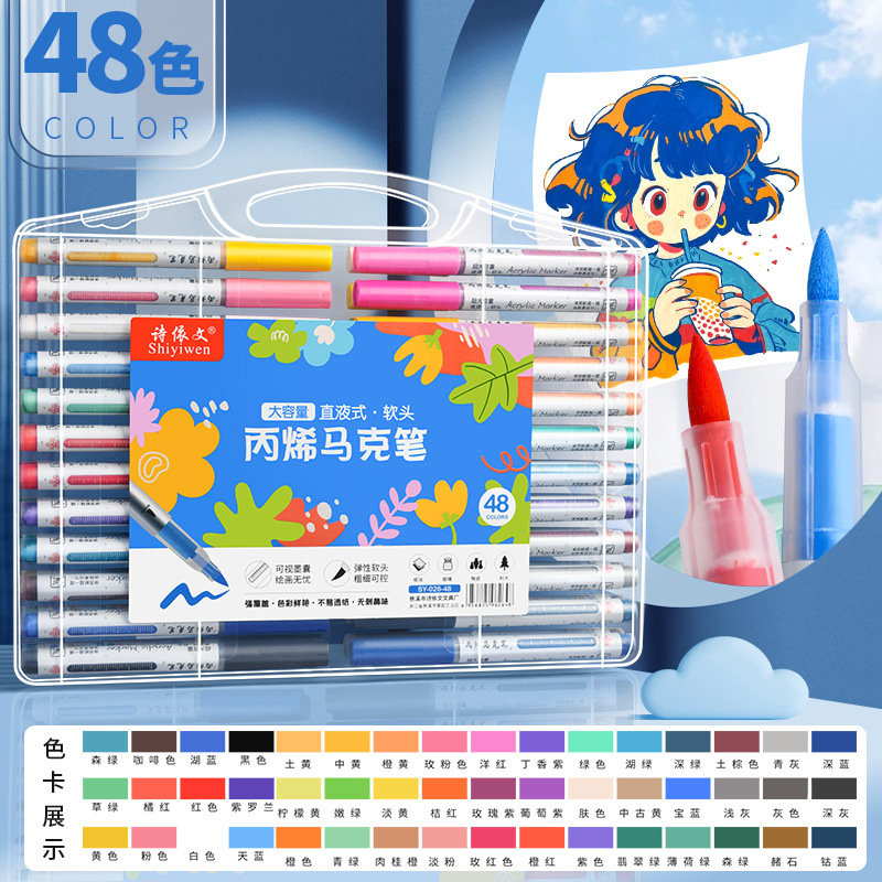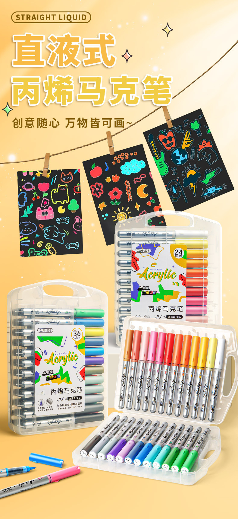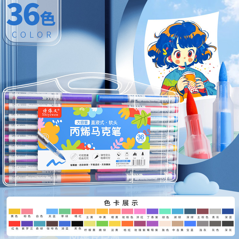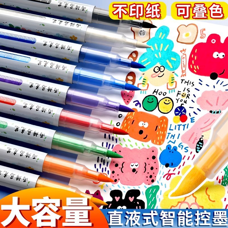 直液式软头马克笔36色学生专用可叠色水彩笔美术涂鸦颜料画笔