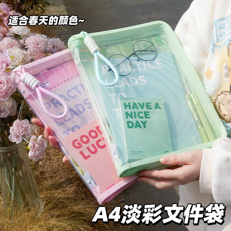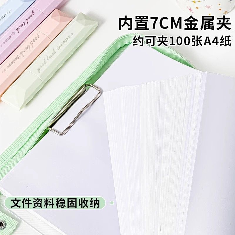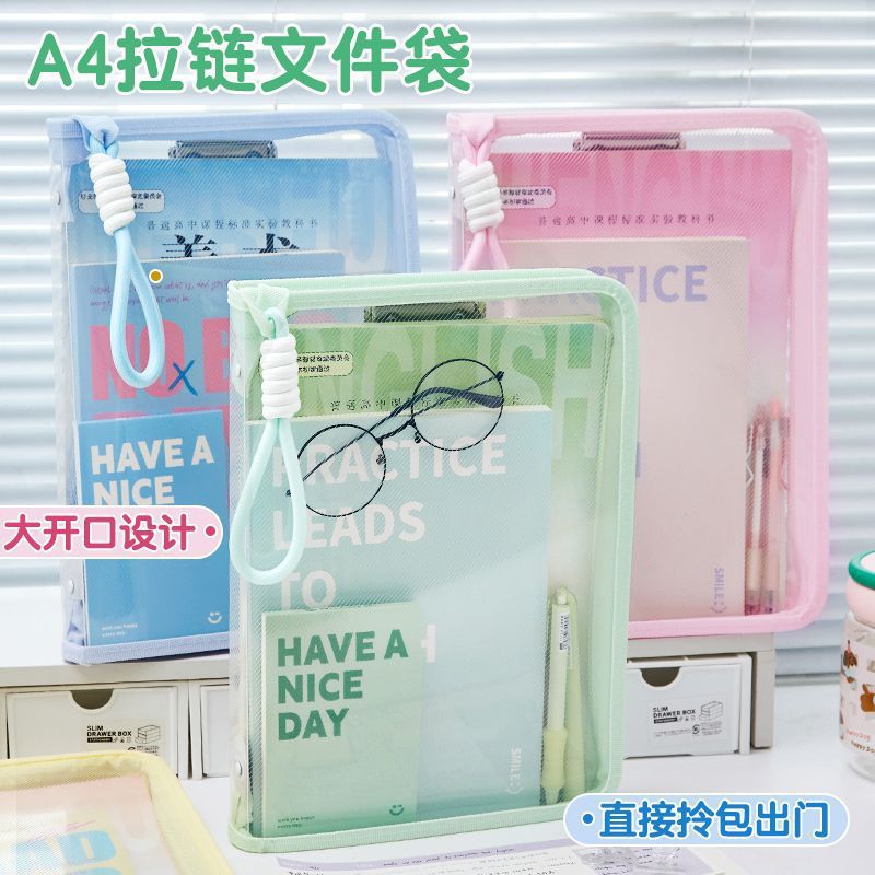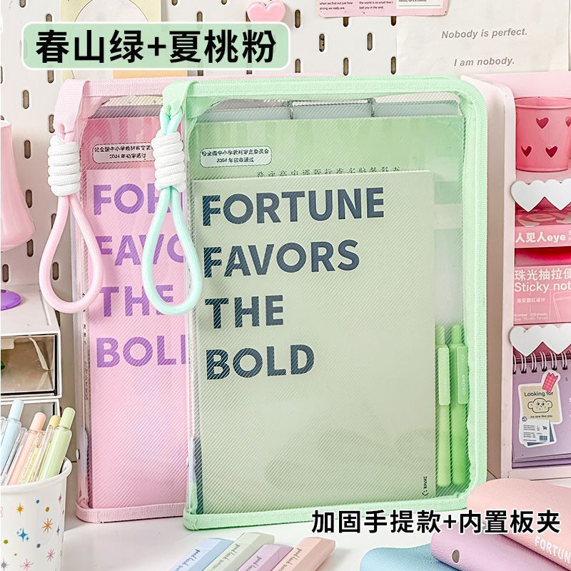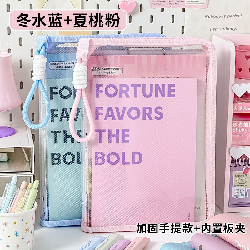 糖果色斜纹手提夹板拉链包文件袋透明提手式试卷资料收纳A4大容量