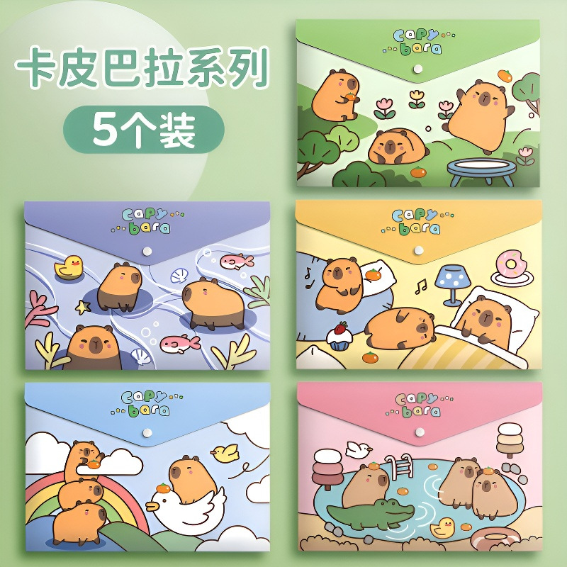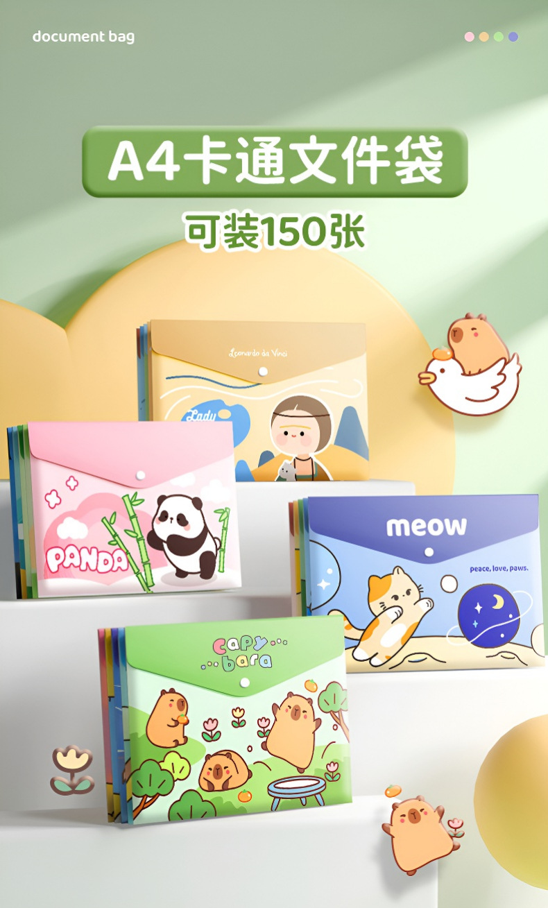 A4文件袋资料袋大容量按扣款档案袋可爱卡通多功能文件夹收纳袋