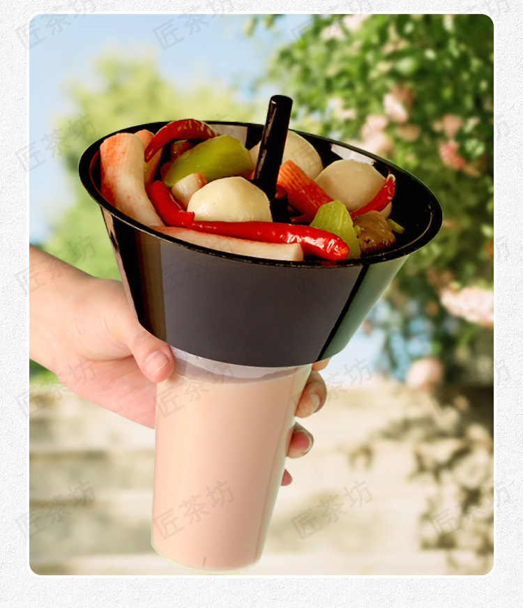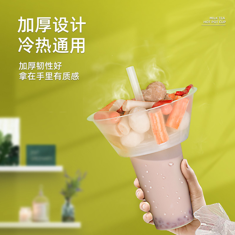 网红行走的火锅杯一次性加厚商用奶茶杯拇指生煎炸鸡水果杯托