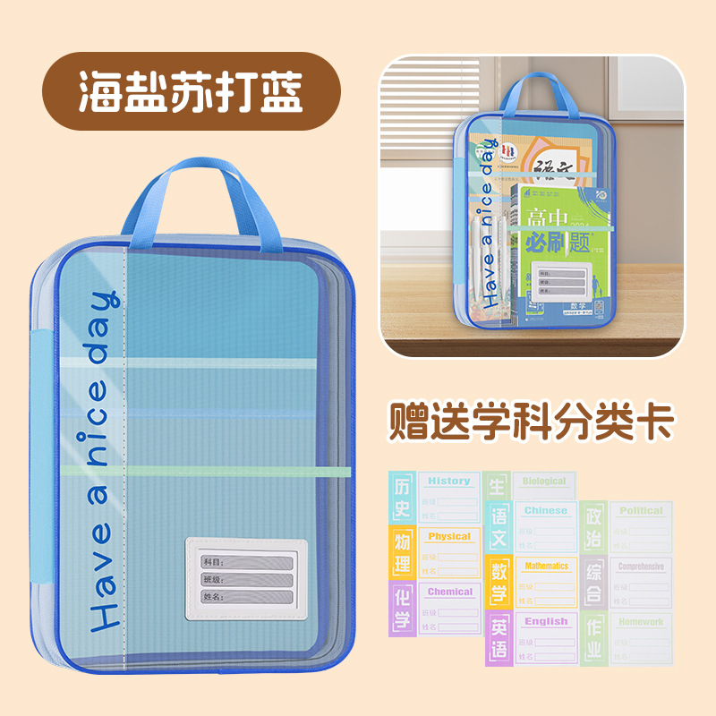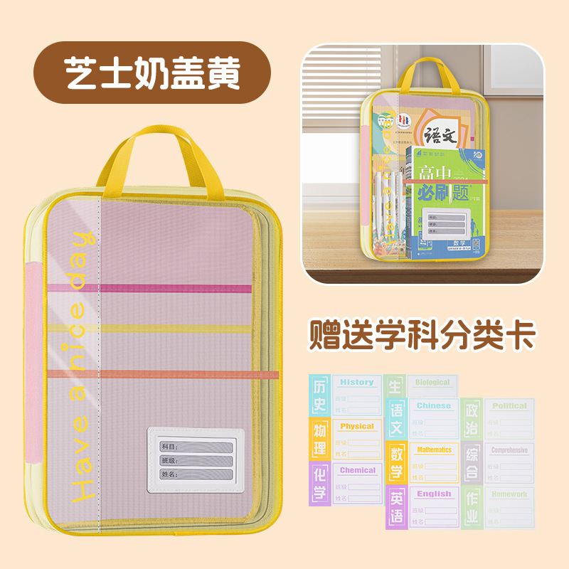L型大开口四层科目分类袋手提透明加厚网纱袋学生补习科目考试袋
