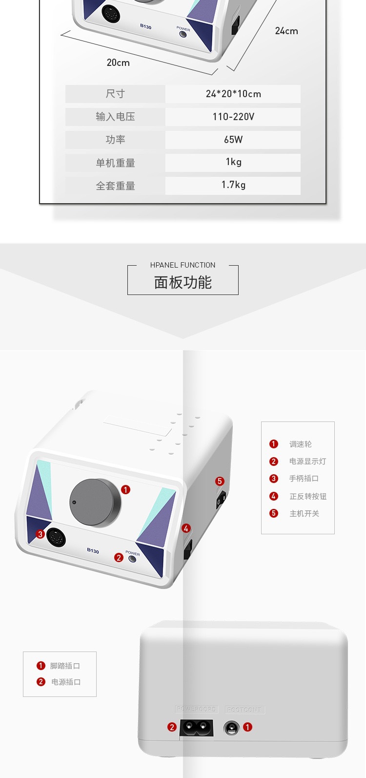新款跨境STRONG B130+105L美甲打磨机35000转台式专业卸甲机抛光