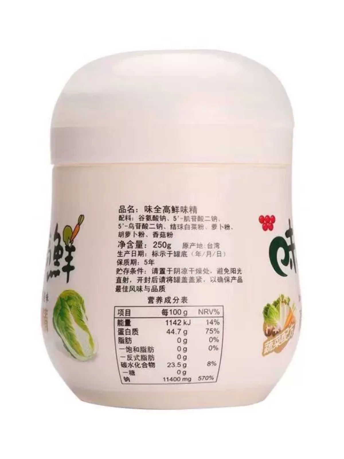 250g罐装台湾味全高鲜味精全素食家用调料蔬菜提取提鲜味精
