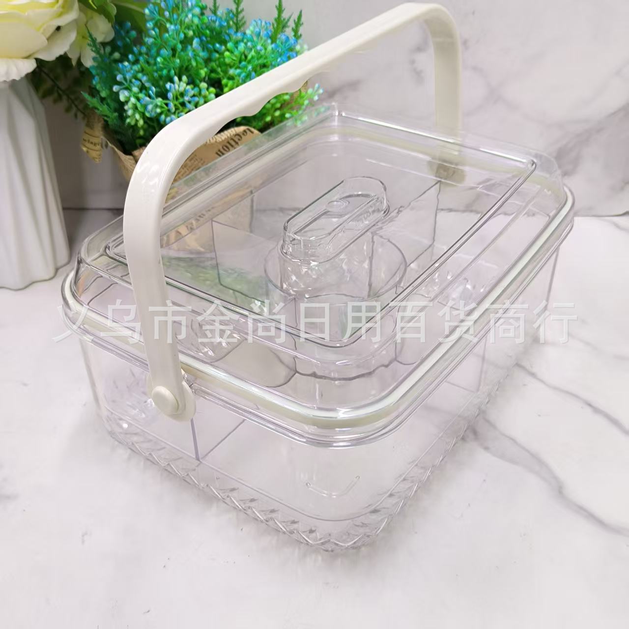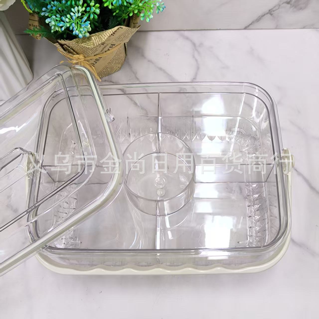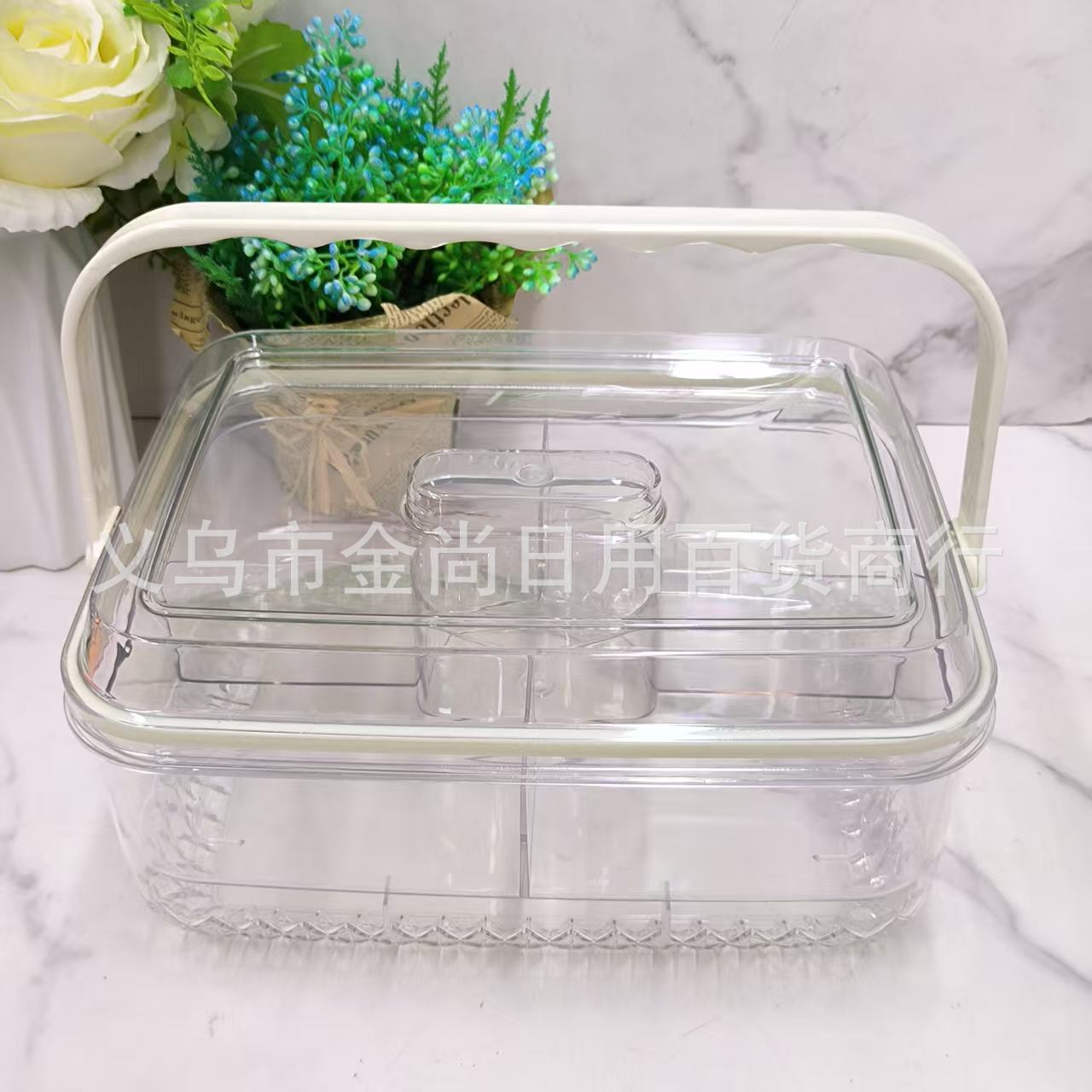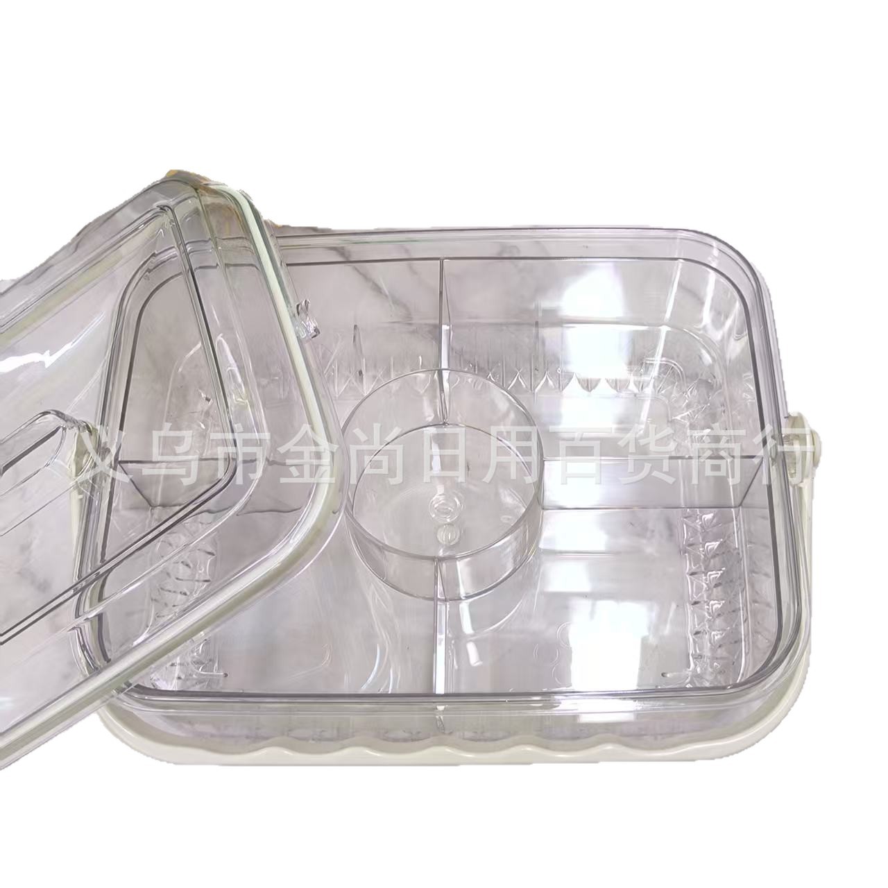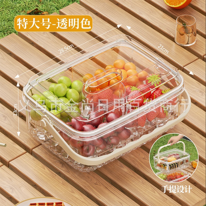 手提双层PET透明零食水果冰桶保鲜盒长形四格保鲜盒包装牛皮纸盒