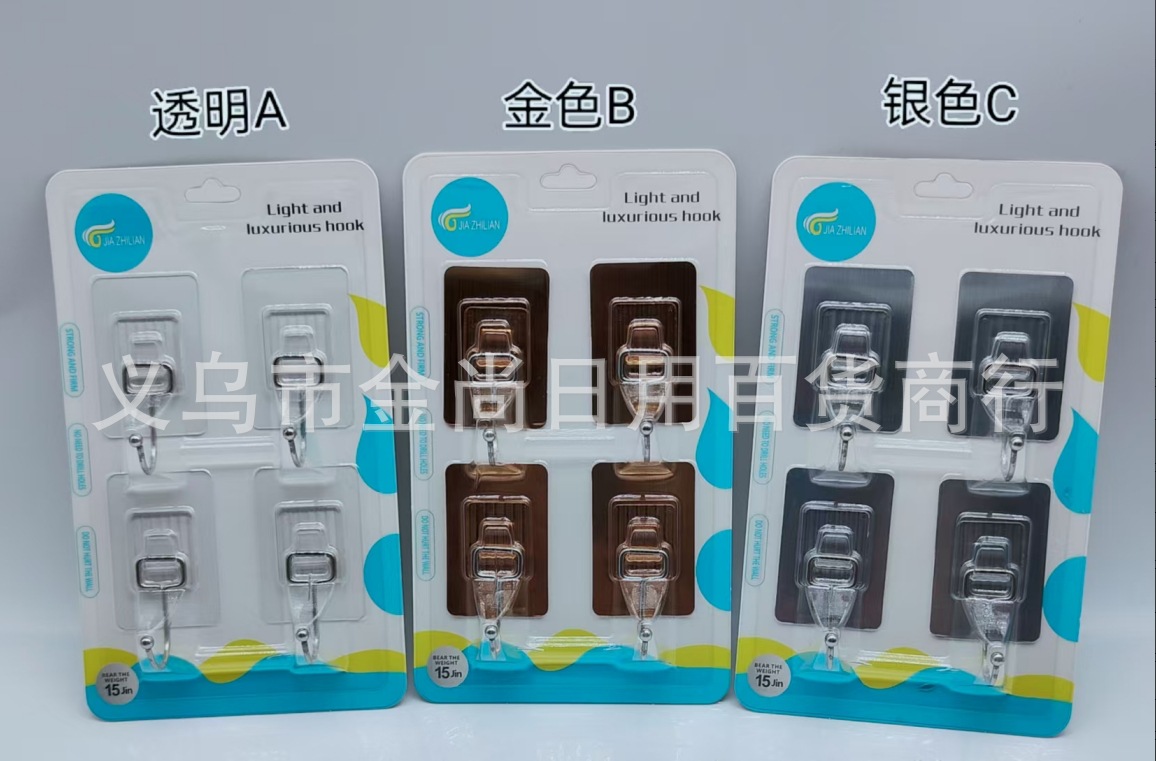 无痕不锈钢挂钩大号高性能纳米15kg承重粘钩4个/卡无痕粘钩批发