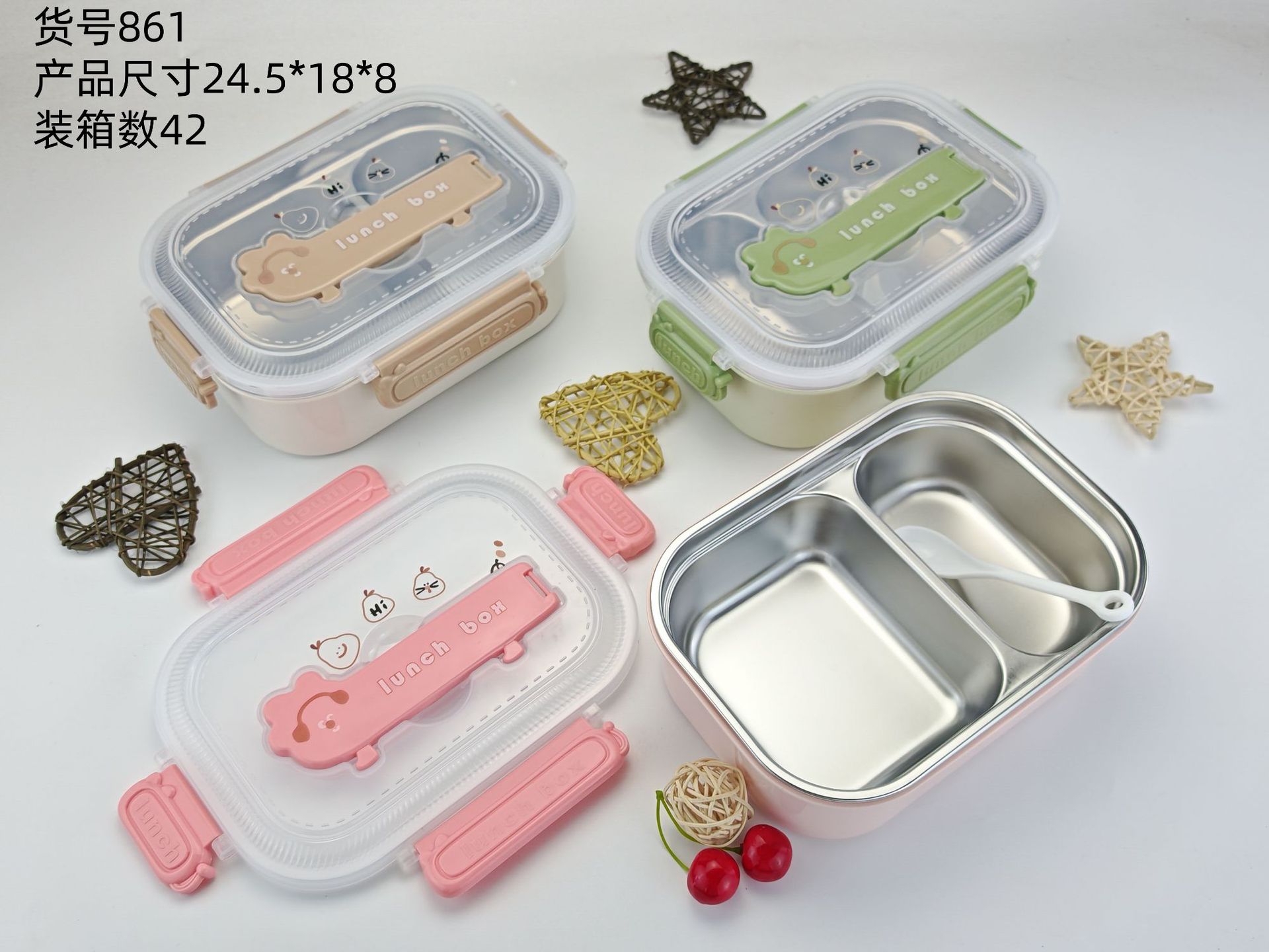 304三格不锈钢儿童饭盒密封便当盒学生午餐盒食品级野餐盒201内胆