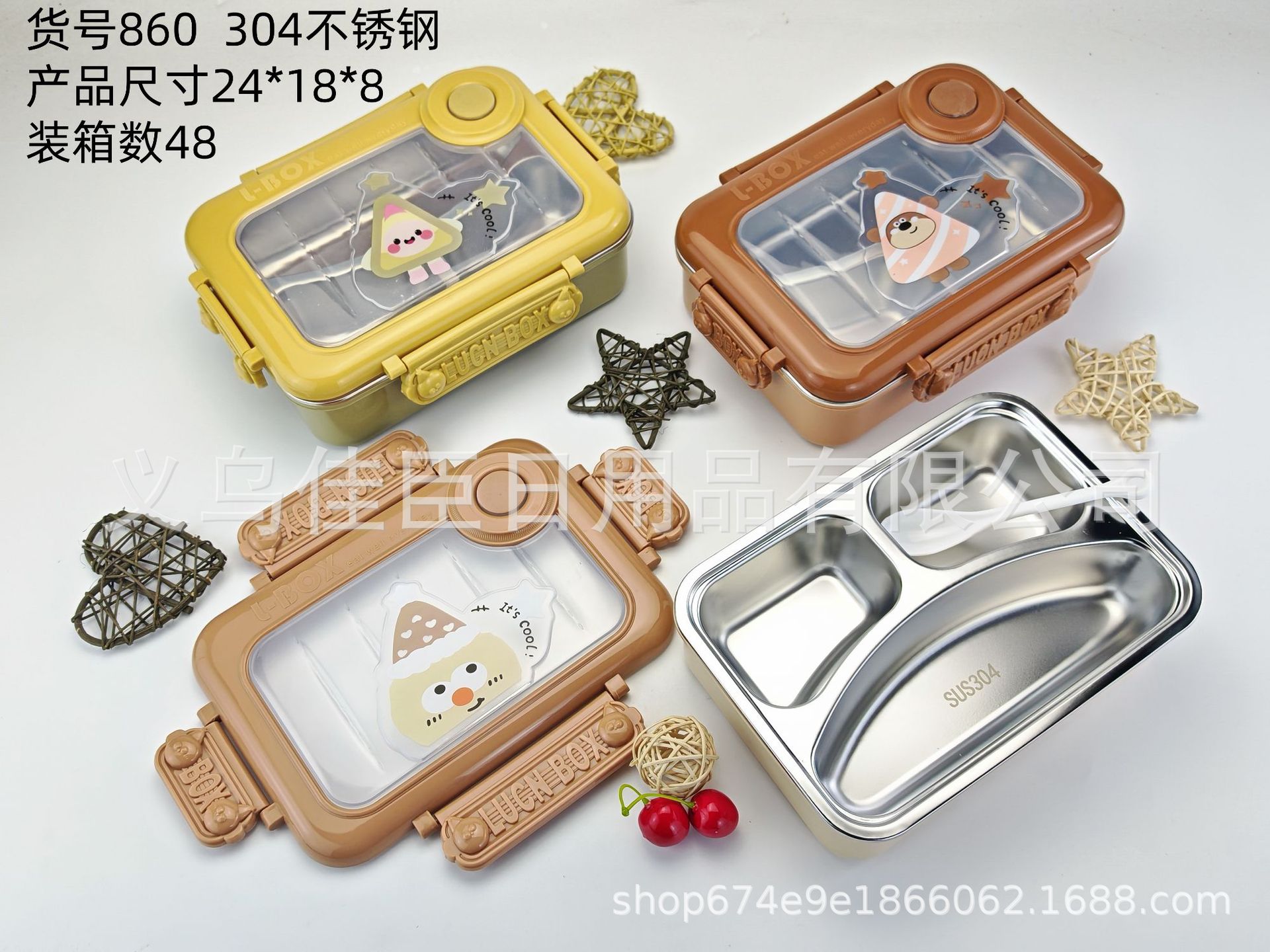 2025新卡通可爱不锈钢保温饭盒学生便当盒分格保鲜盒上班族午餐盒