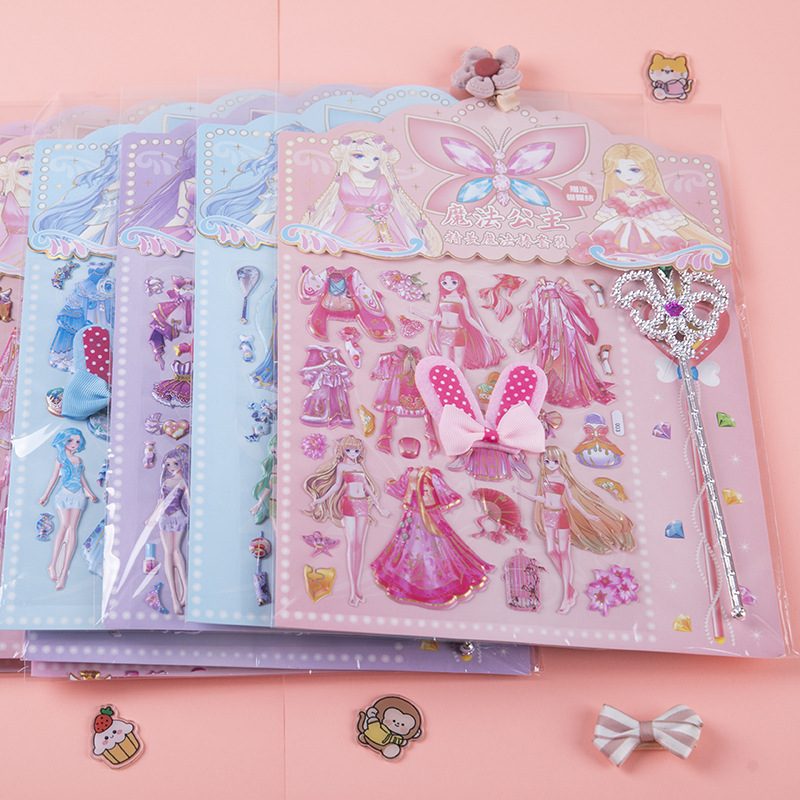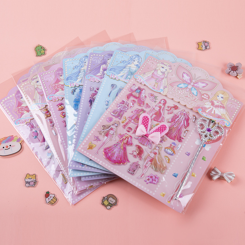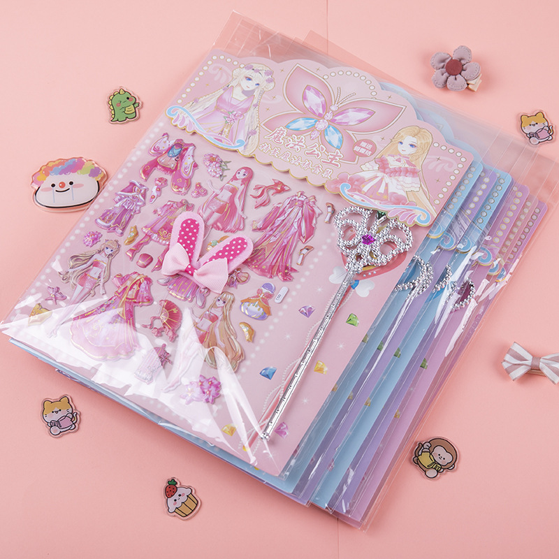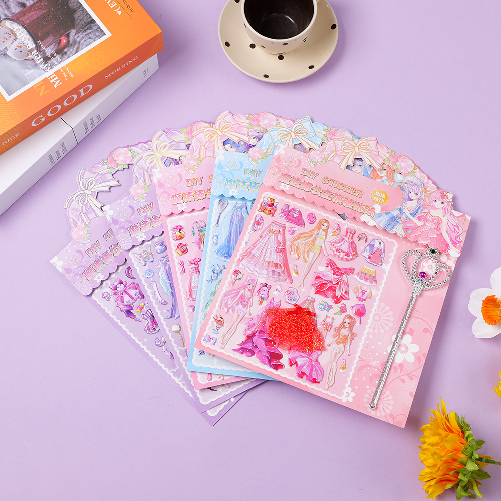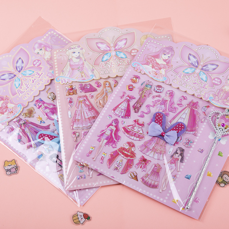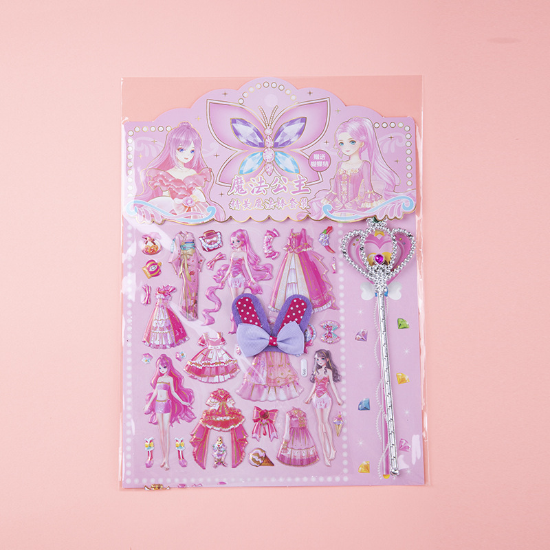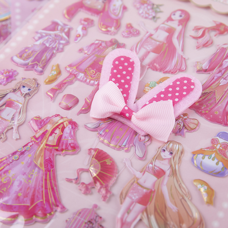 兔耳朵款儿童奖励贴纸蕾丝魔法仗贴纸女孩换装公主换装贴纸套装