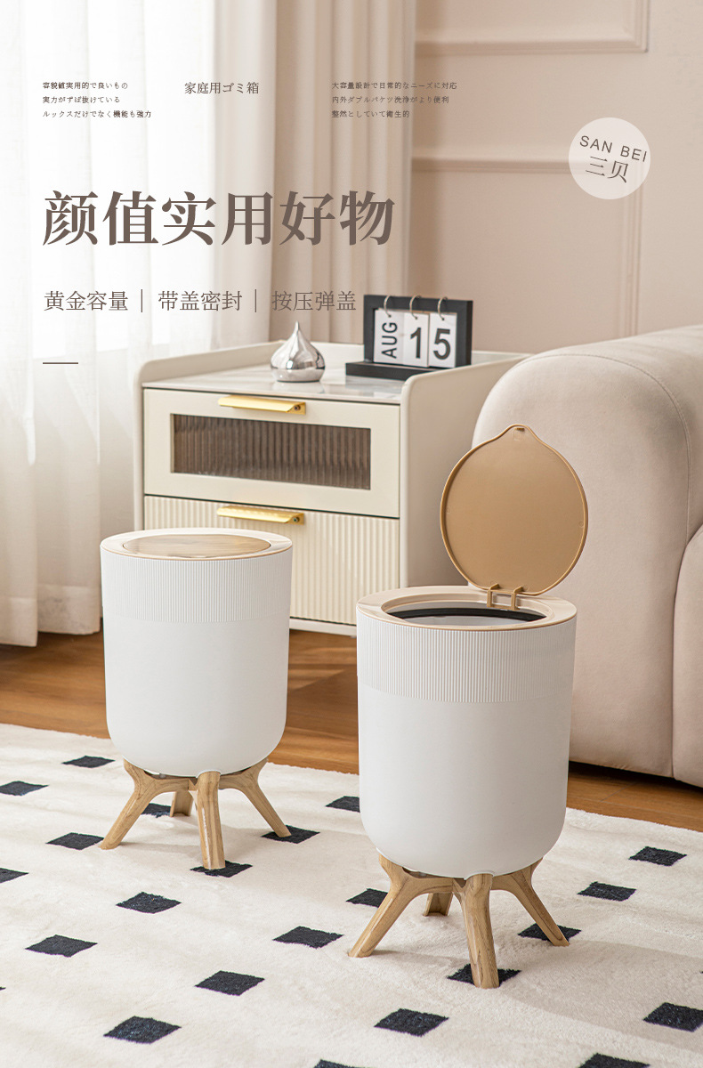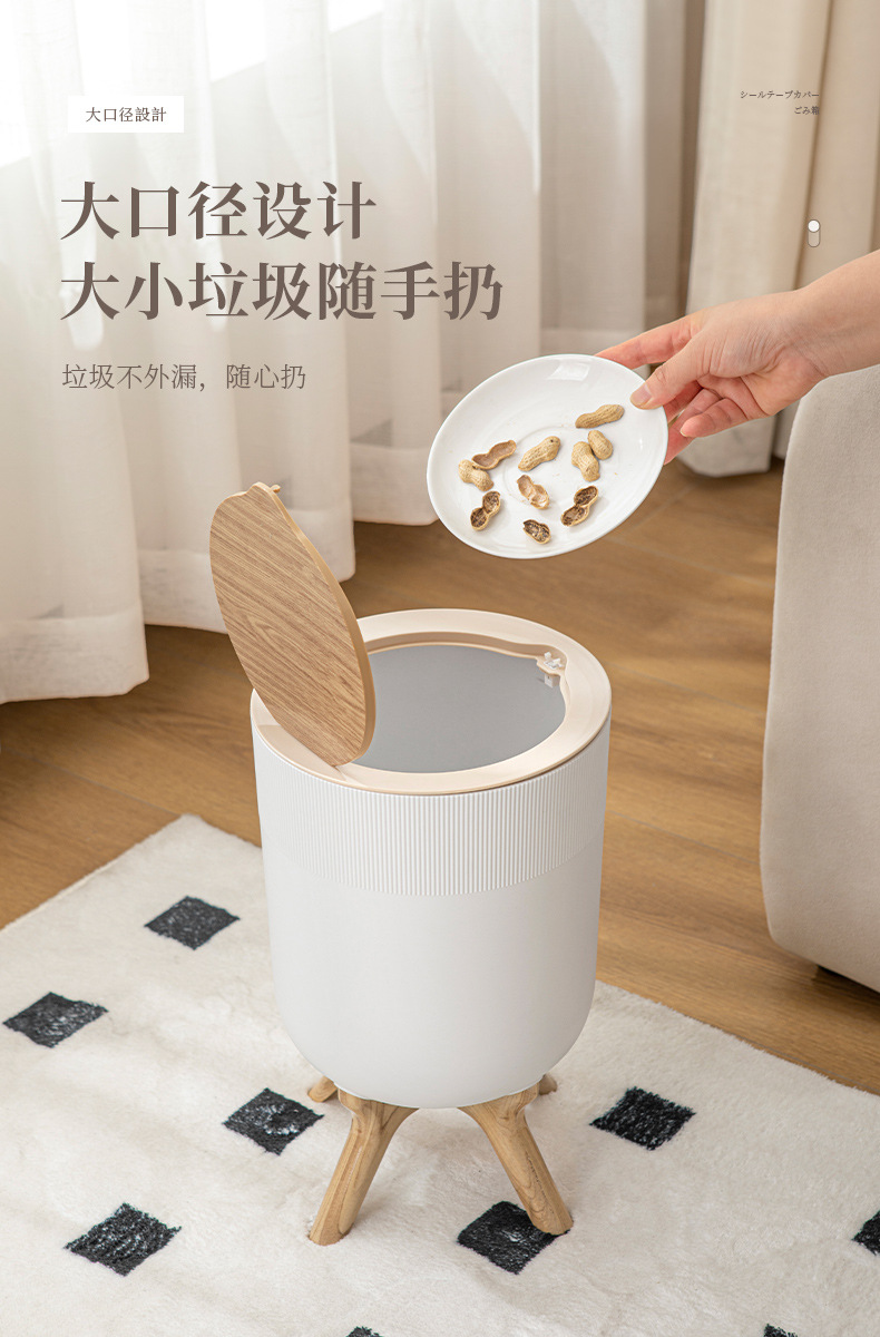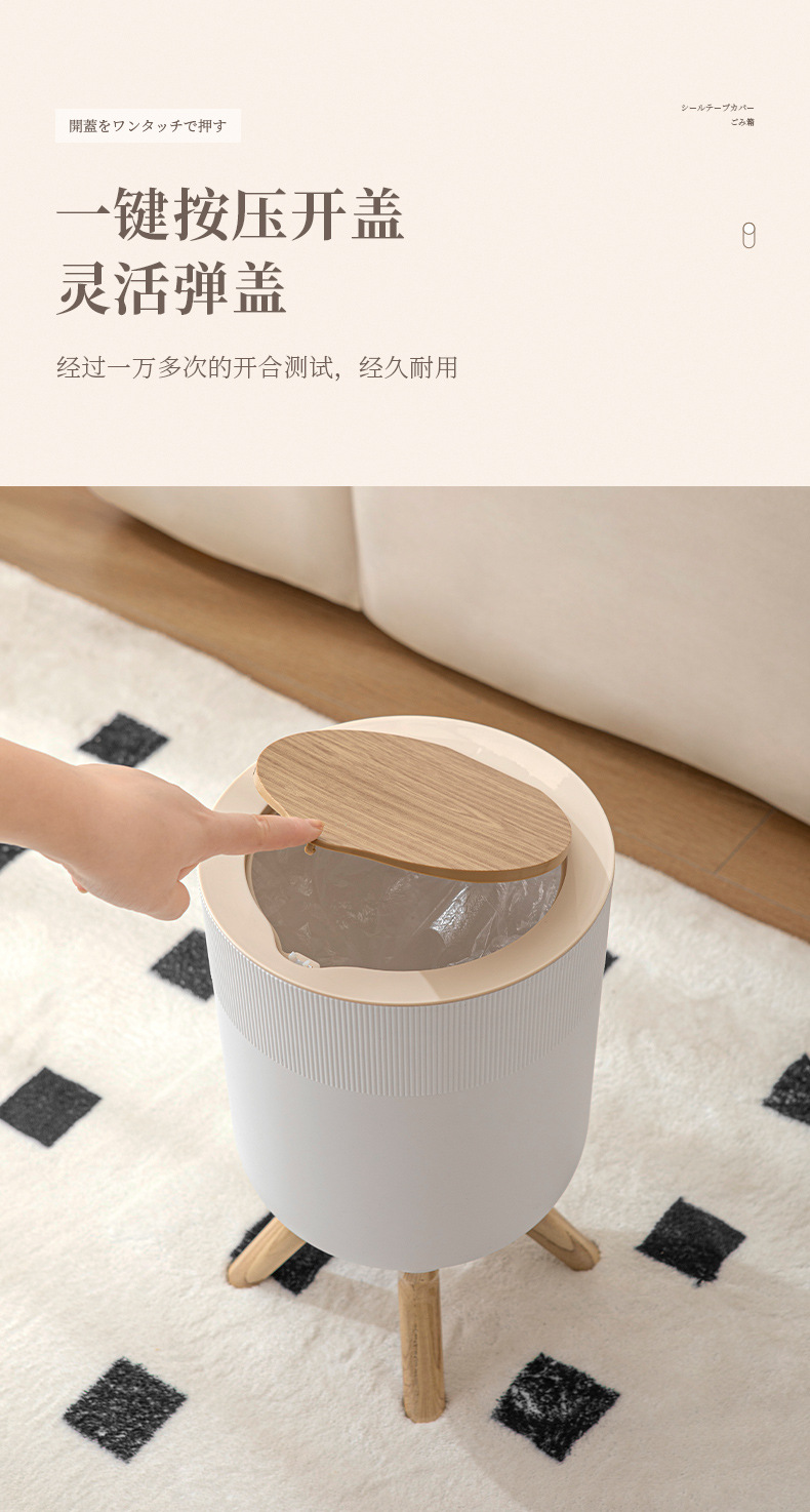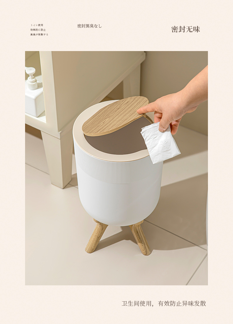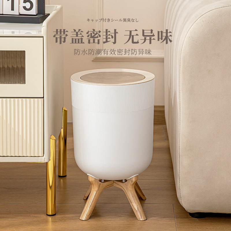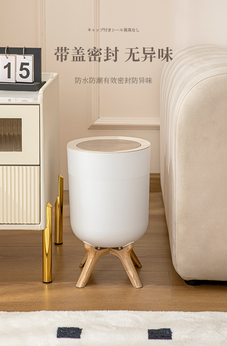 高脚仿实木垃圾桶带盖按压pp材质白色现货密封清洁垃圾篓四角