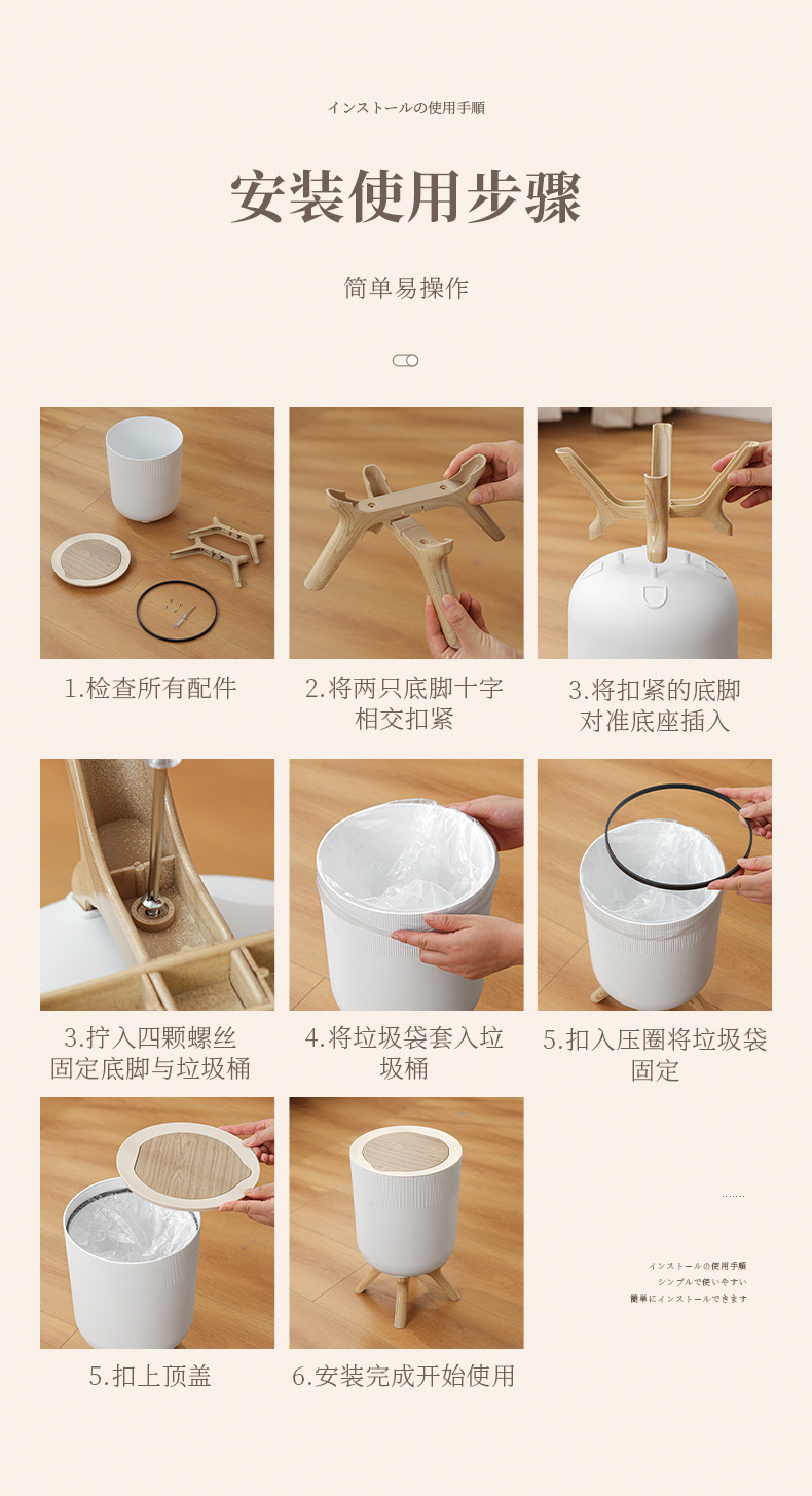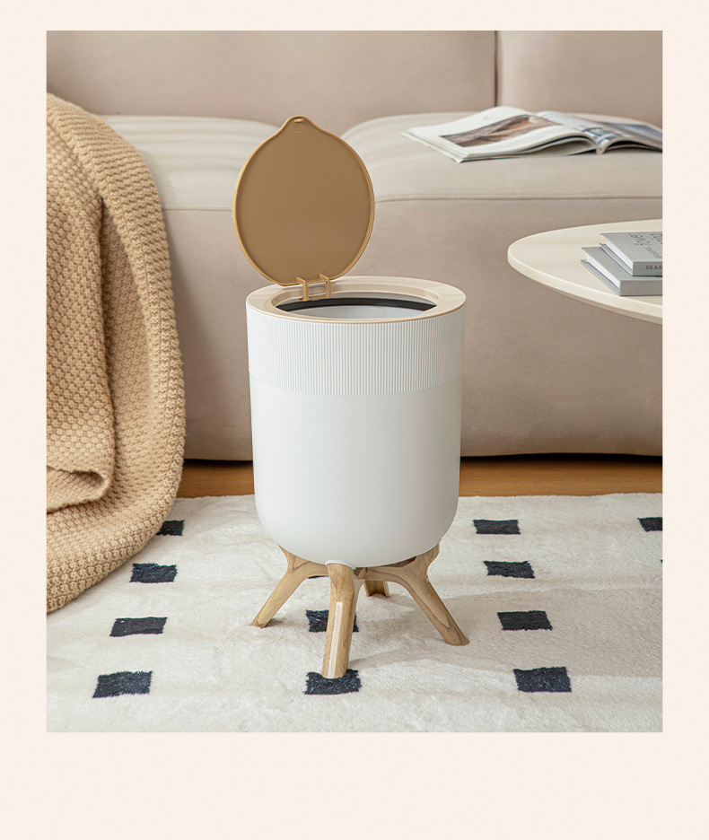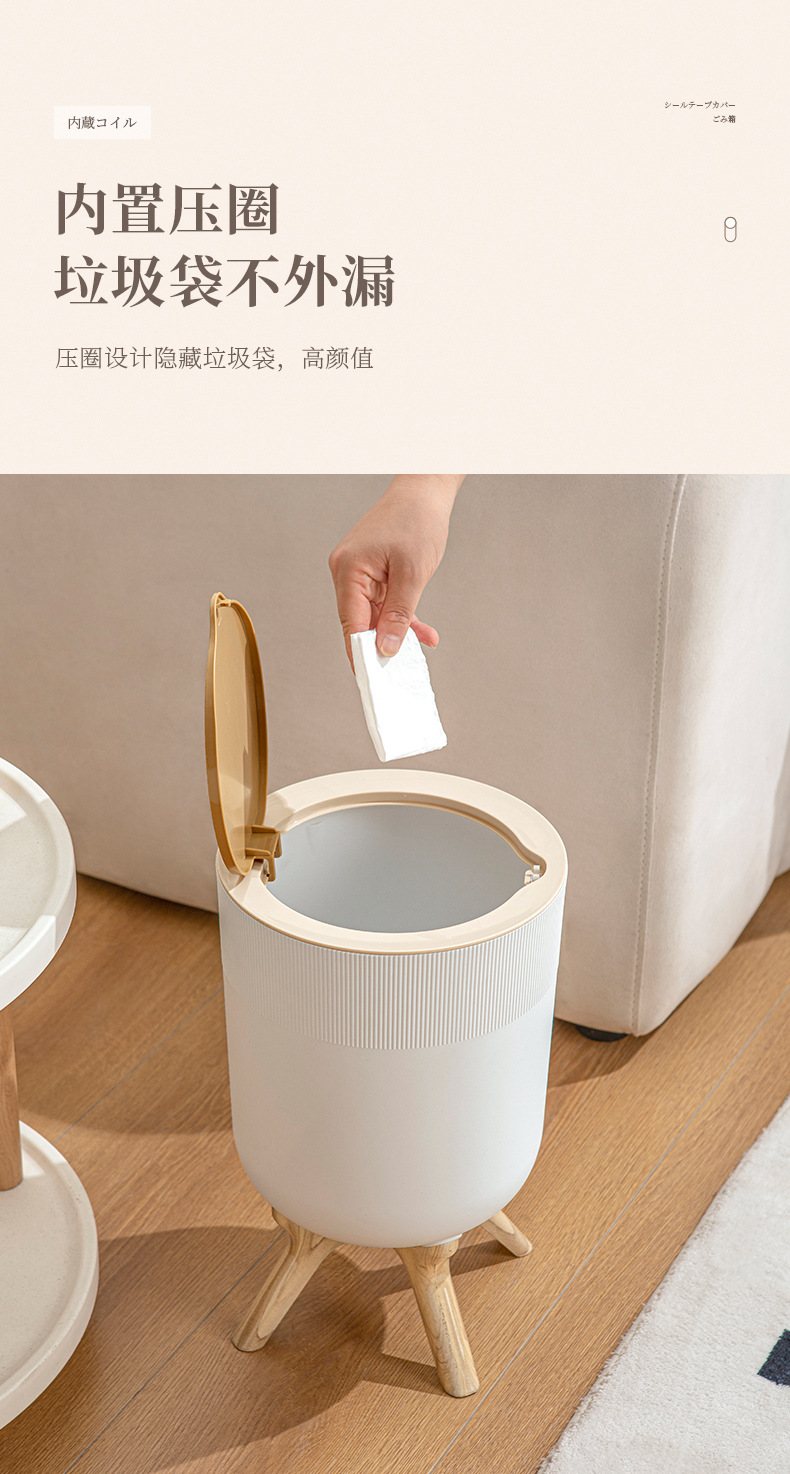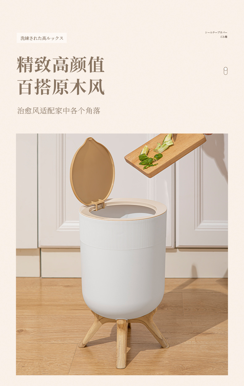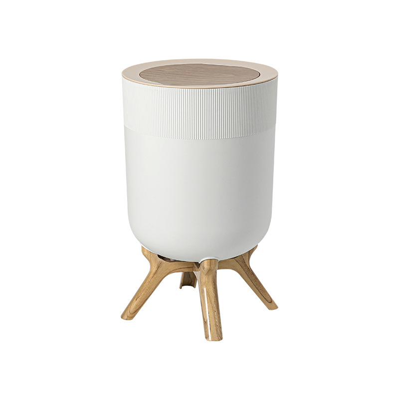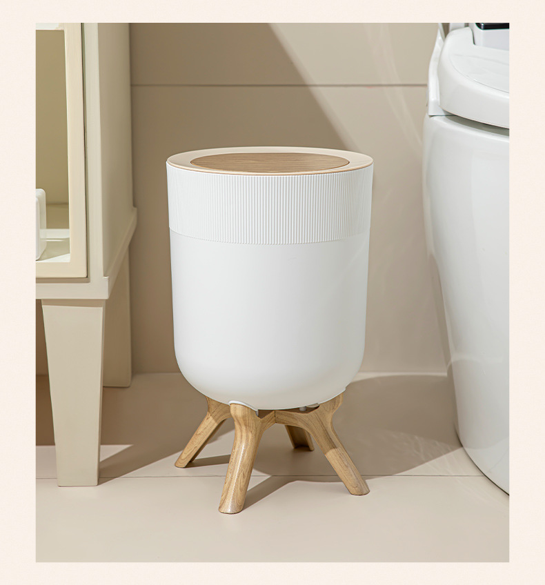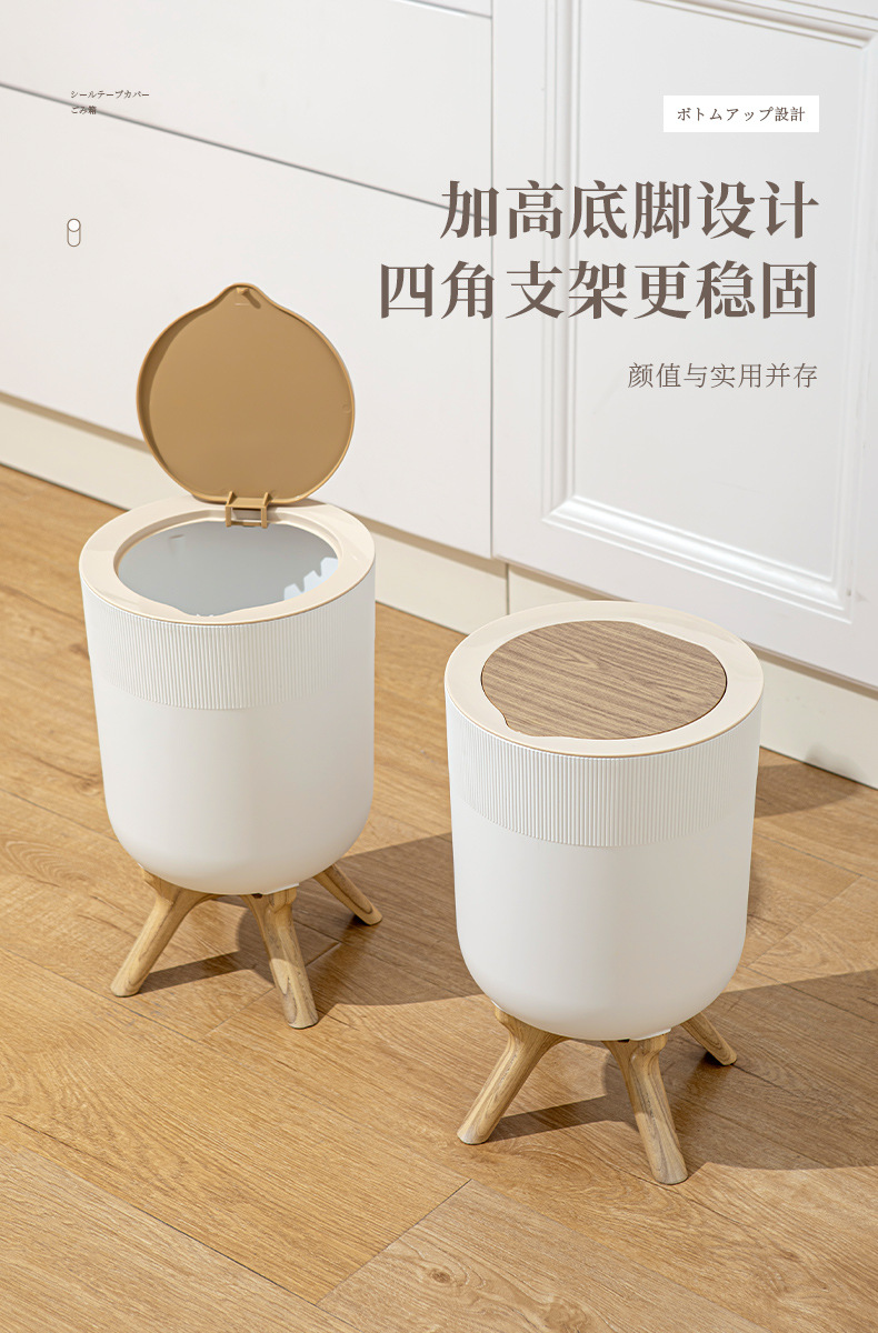 高脚仿实木垃圾桶带盖按压pp材质白色现货密封清洁垃圾篓四角