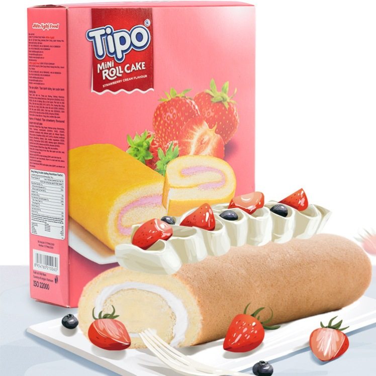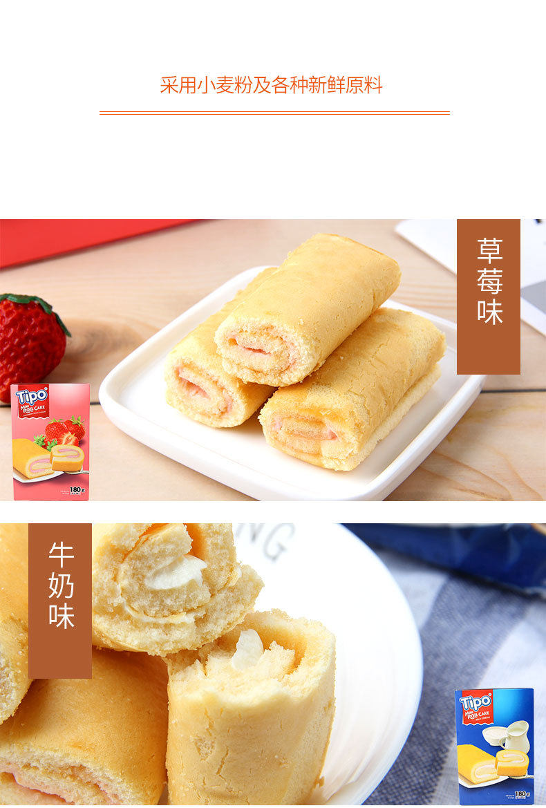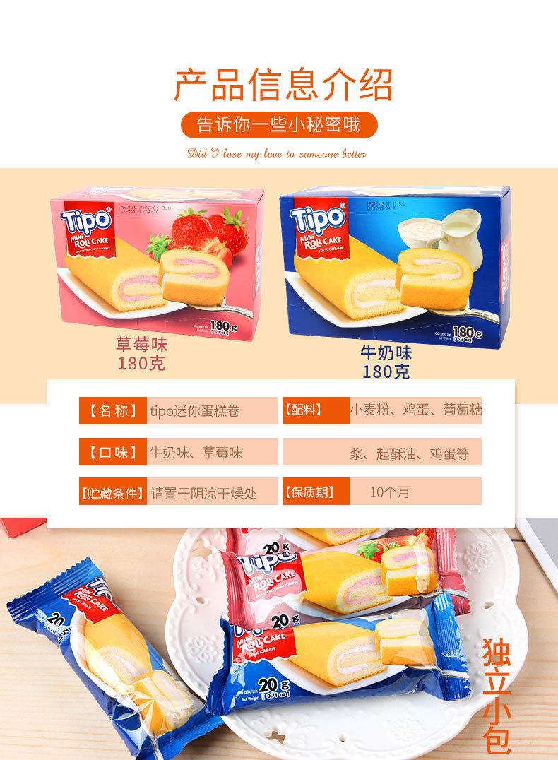 越南进口 tipo迷你蛋糕卷180g 草莓牛奶味夹心瑞士卷早餐糕点零食