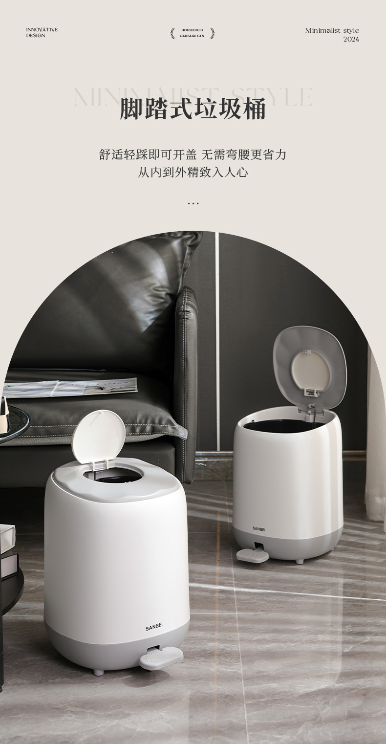 脚踏式垃圾桶简约高颜值家用卫生间厨房带盖大容量防水内胆防臭