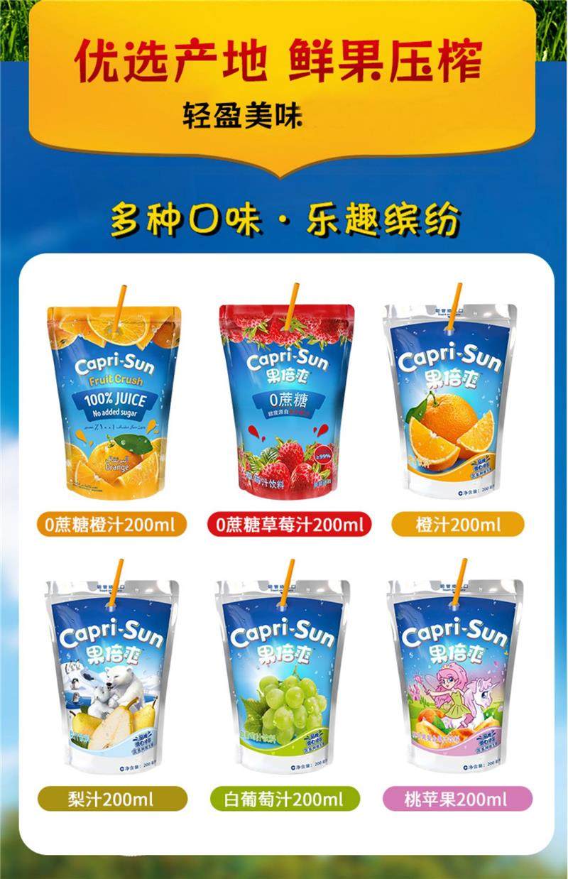 进口果倍爽果汁200ml苹果葡萄橙汁鲜果榨汁健康儿童饮料