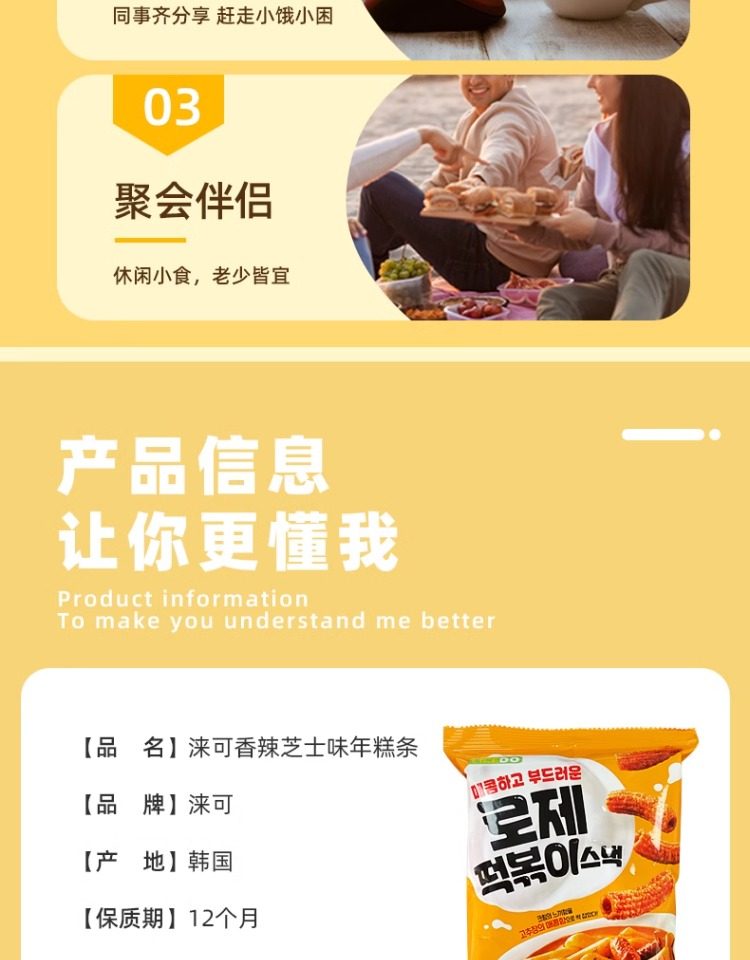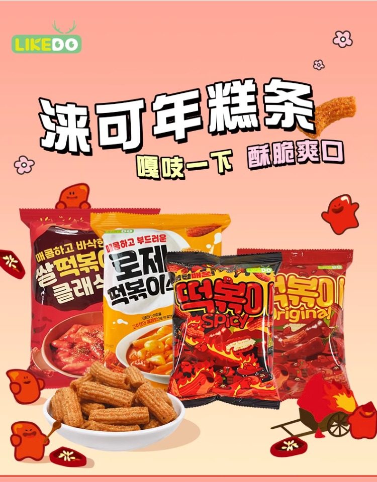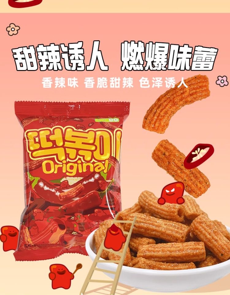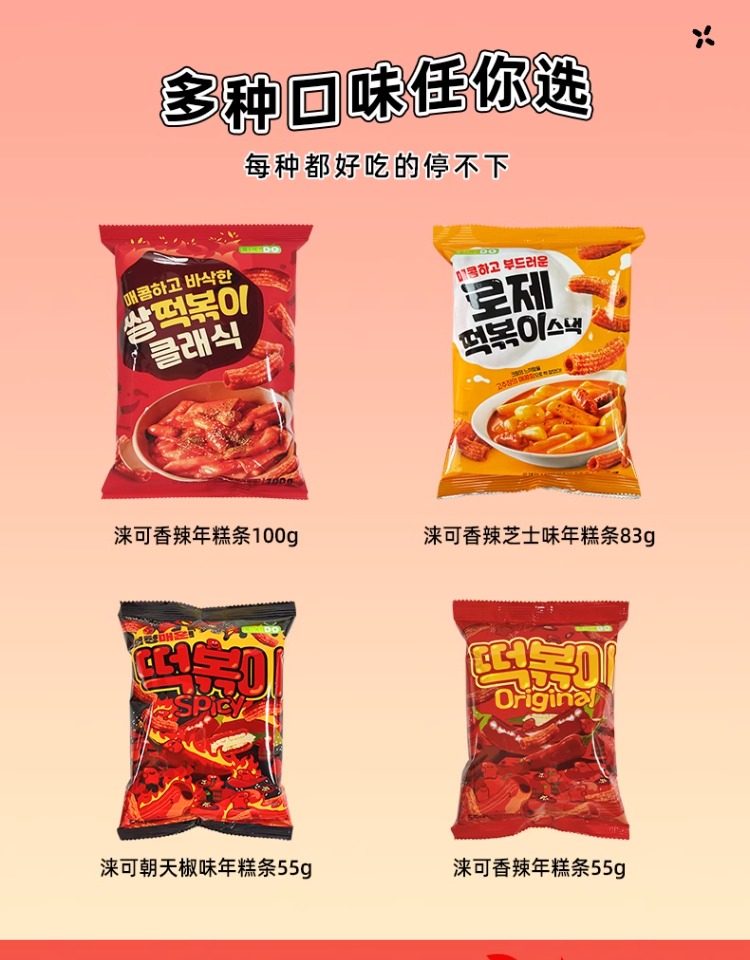 韩国进口涞可年糕条香甜辣芝士膨化零食休闲食品小吃儿童韩式食品