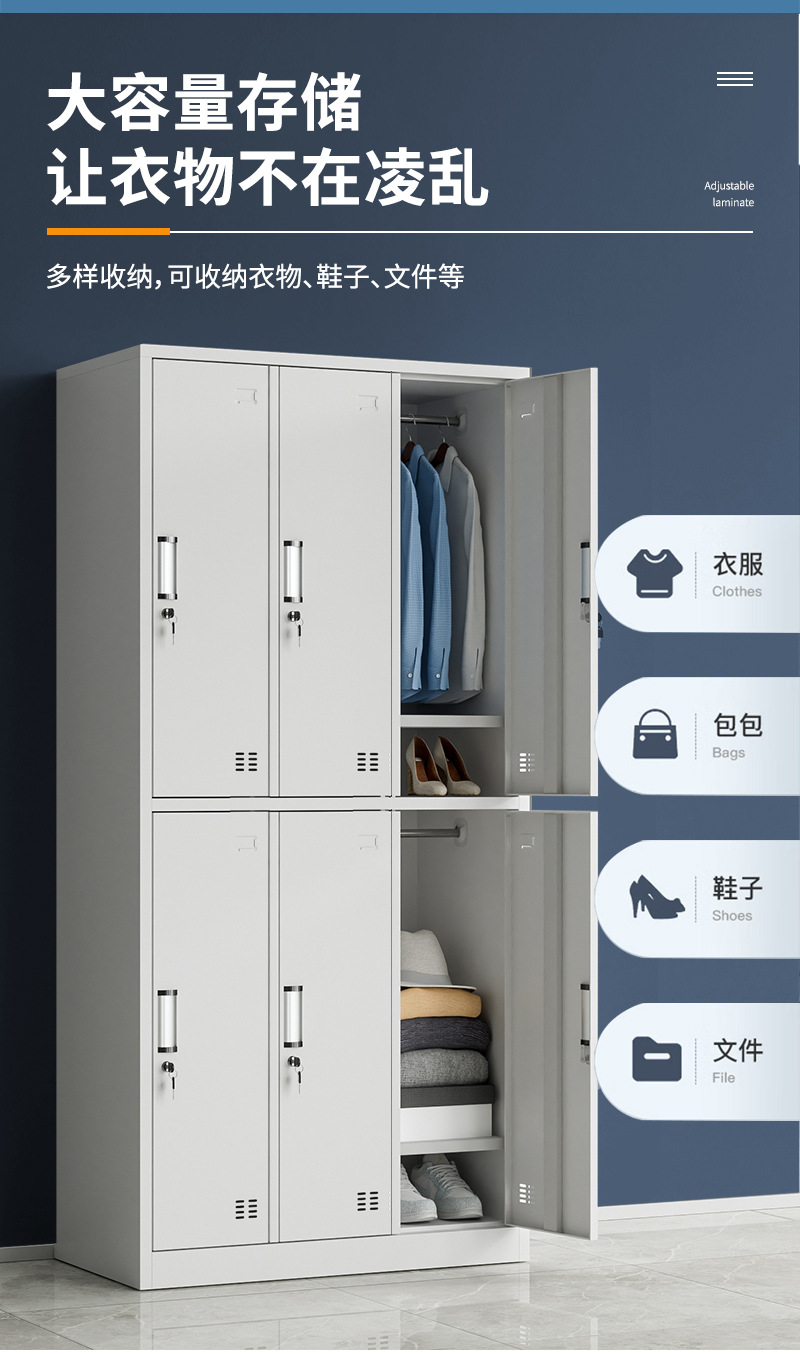 更衣柜员工柜宿舍铁皮储物柜6门健身房浴室衣柜工厂车间鞋柜碗柜
