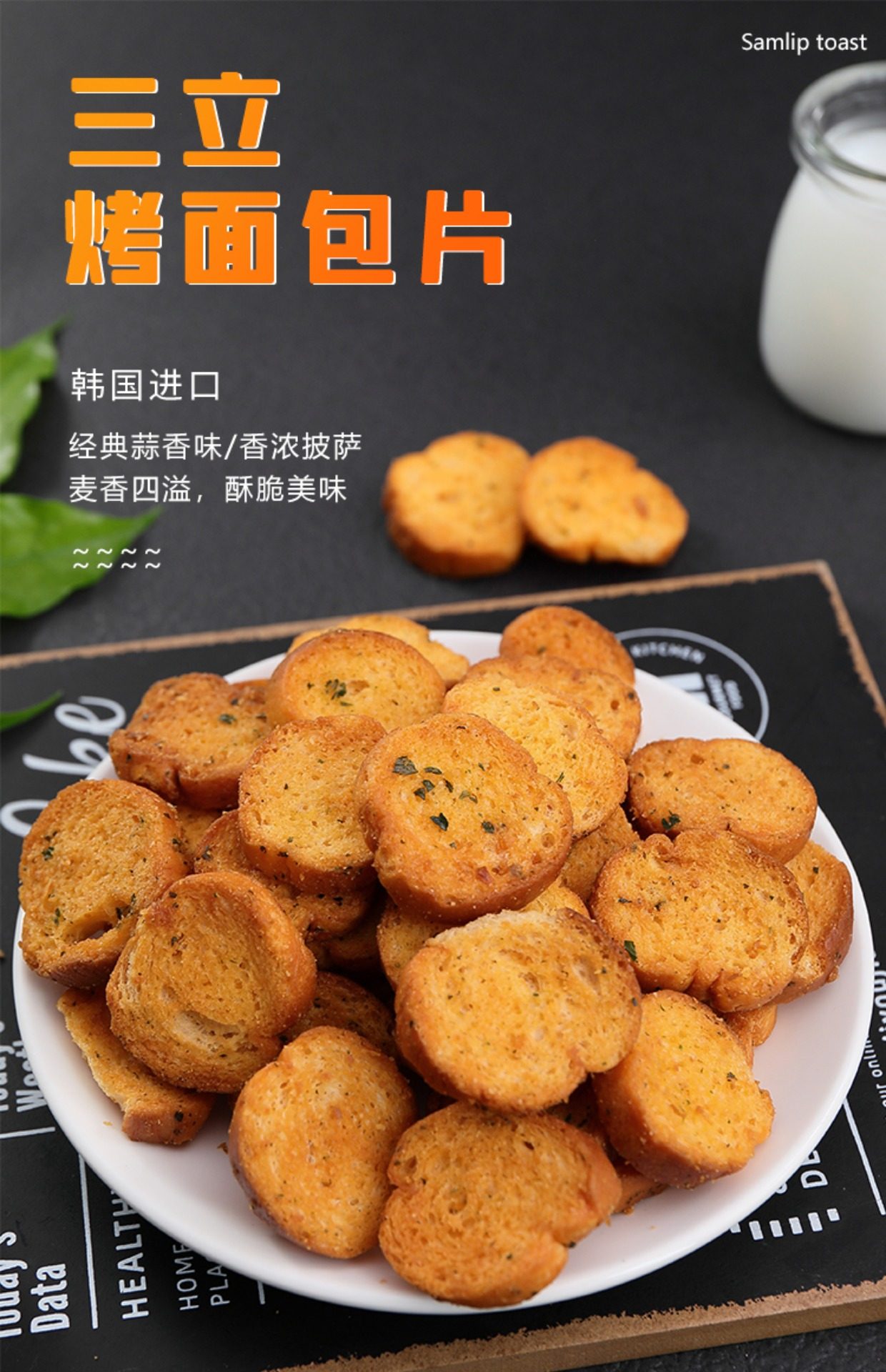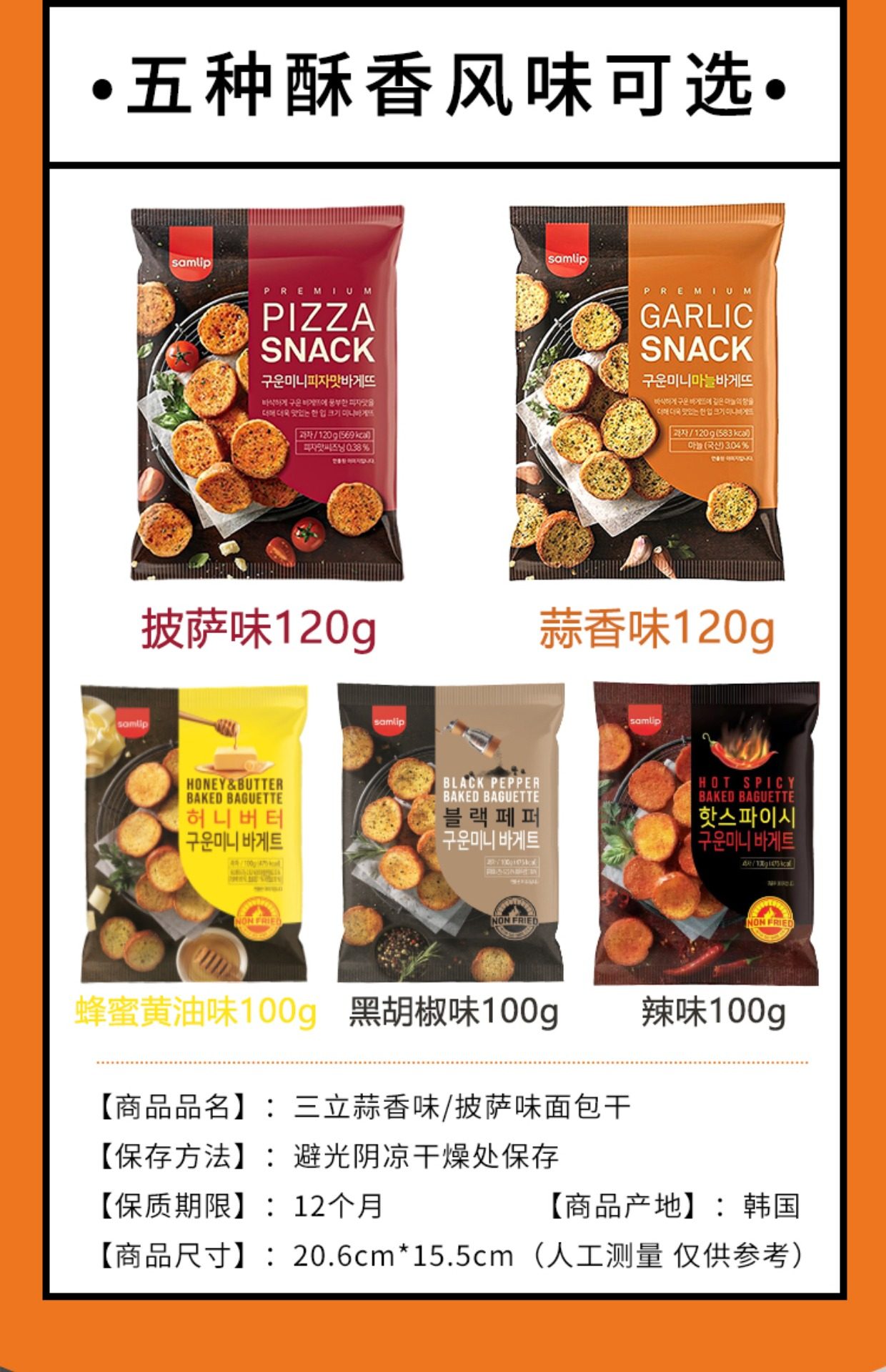 韩国进口零食samlip三立法式蒜蓉披萨蜂蜜黄油黑胡椒辣味面包饼干