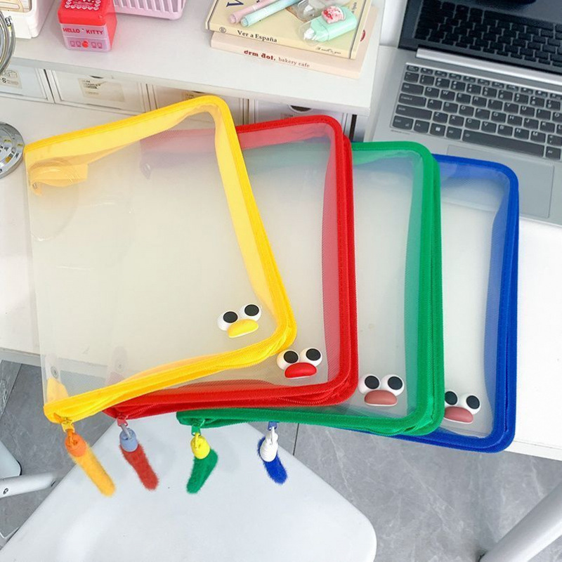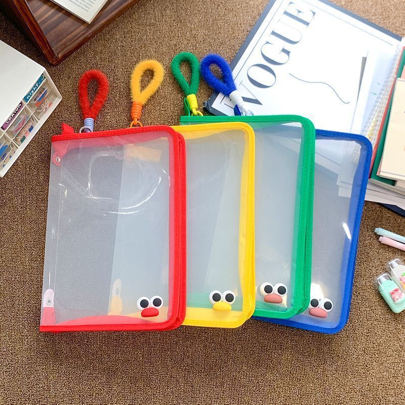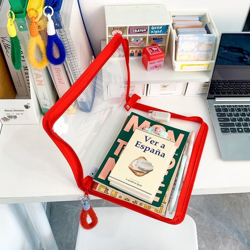 爆款ins新款大学生文件袋手提包大容量A4拉链透明试卷课本收纳袋