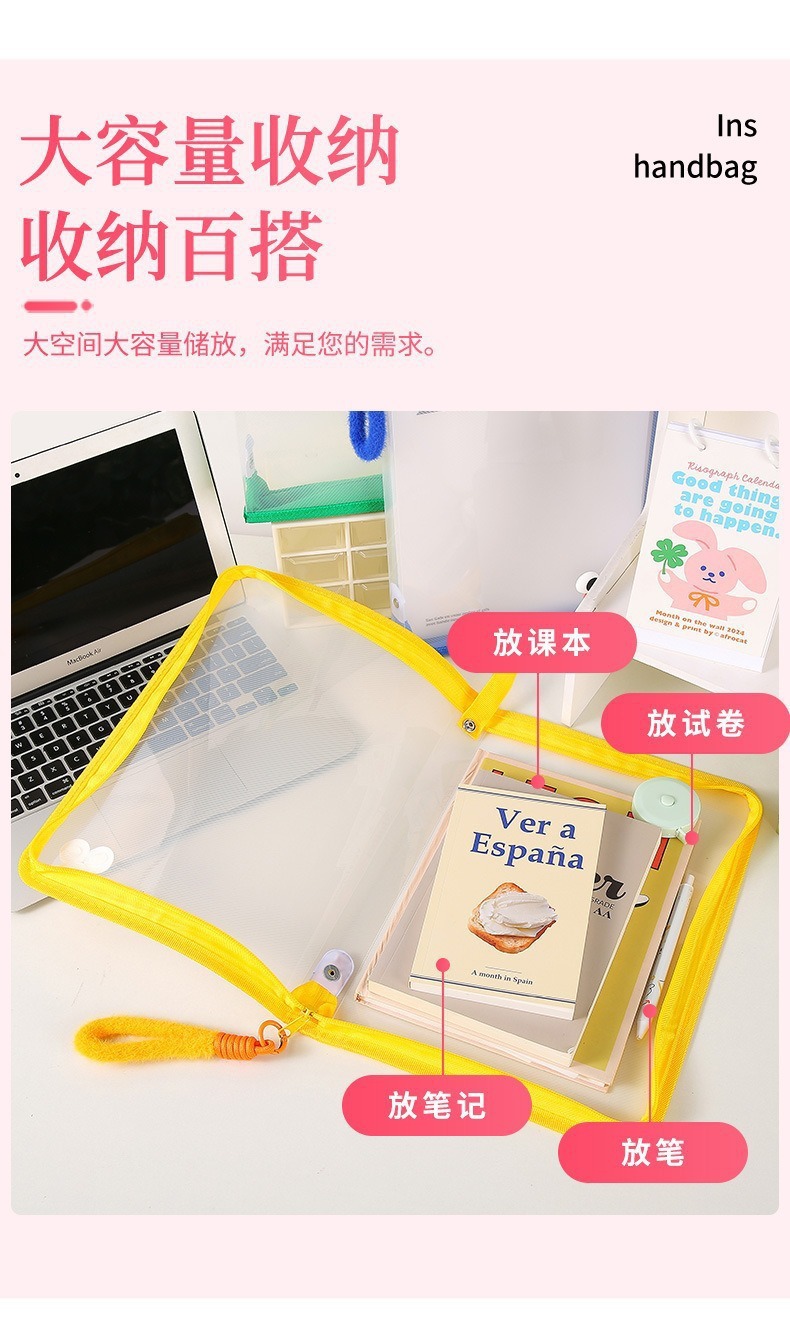 彩色A4透明拉链文件袋大容量透明试卷课ins大学生试卷课本收纳袋8
