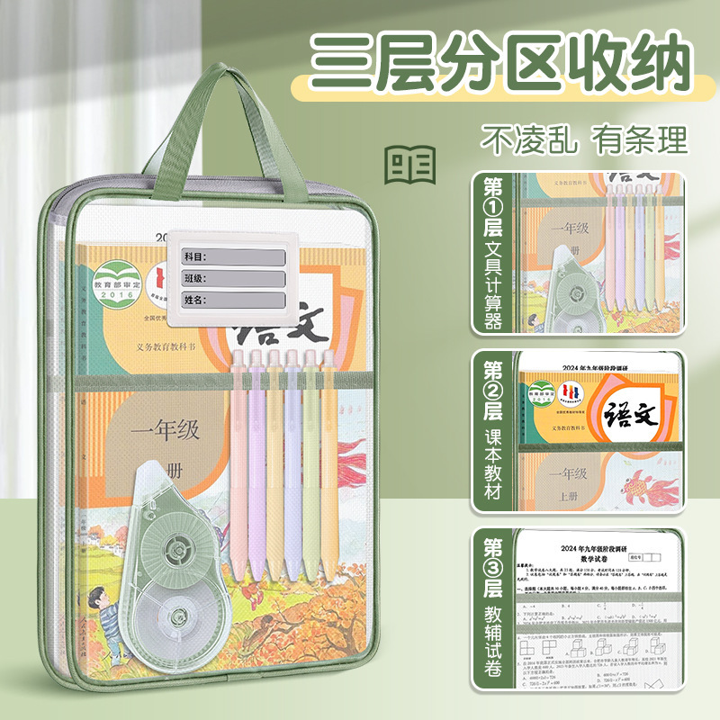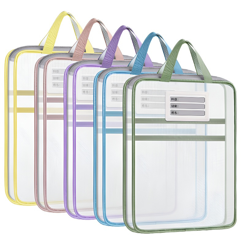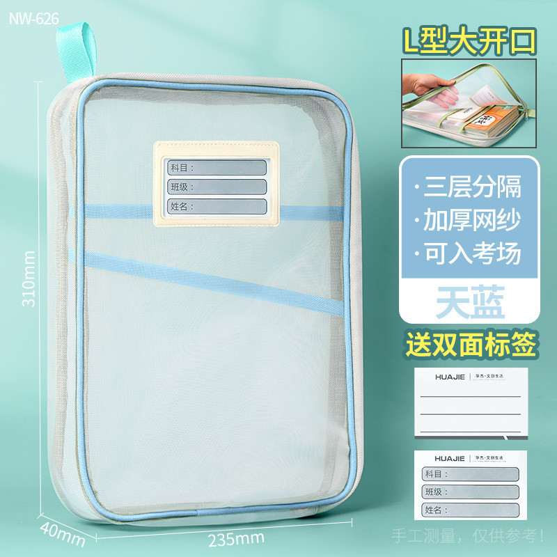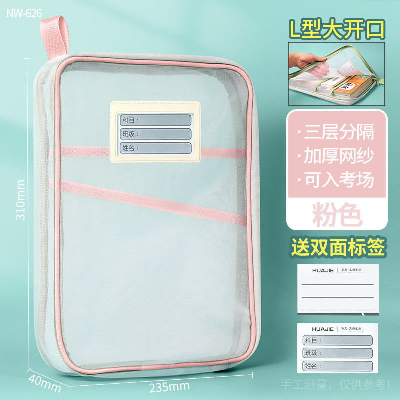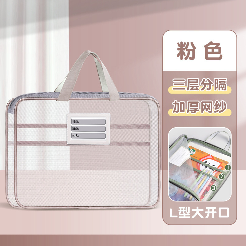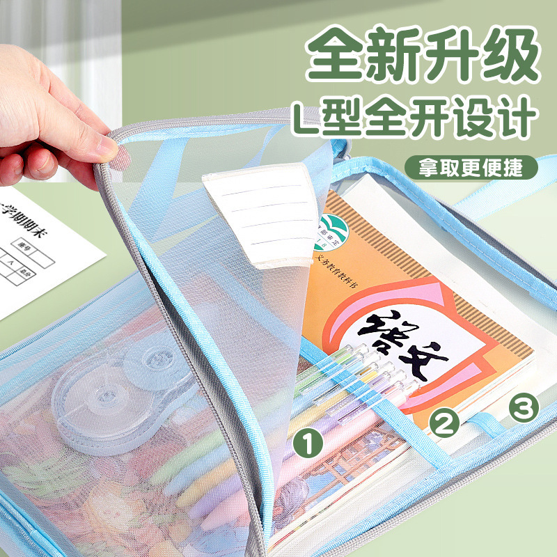 手提分类文件袋透明L型网纱袋学生拎书袋考试专用作业袋现货义乌