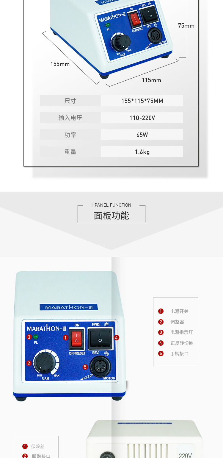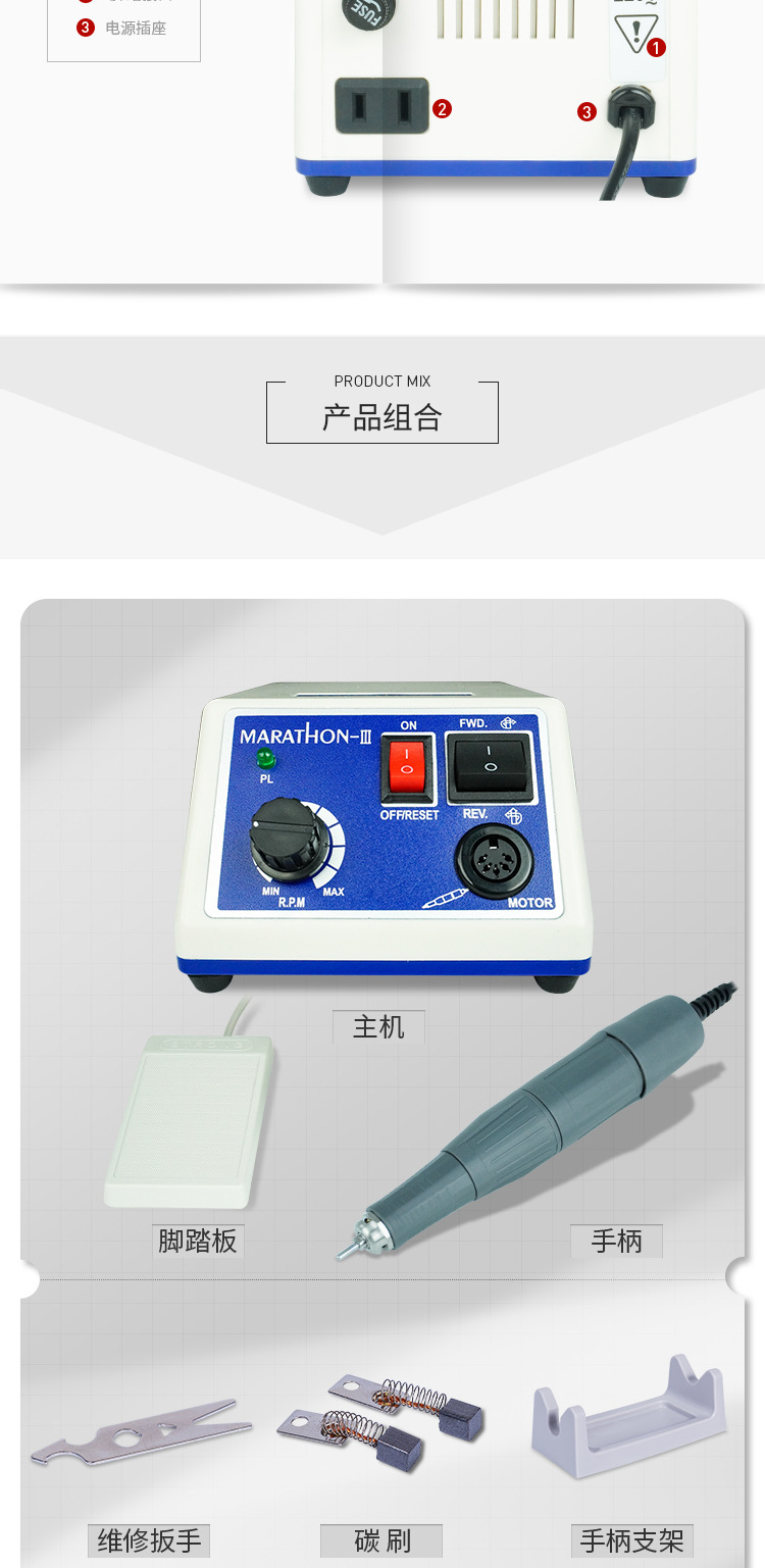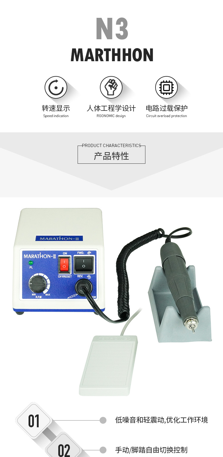 跨境专供marathon3美甲打磨机专业卸美甲指甲牙机雕刻机美甲专用