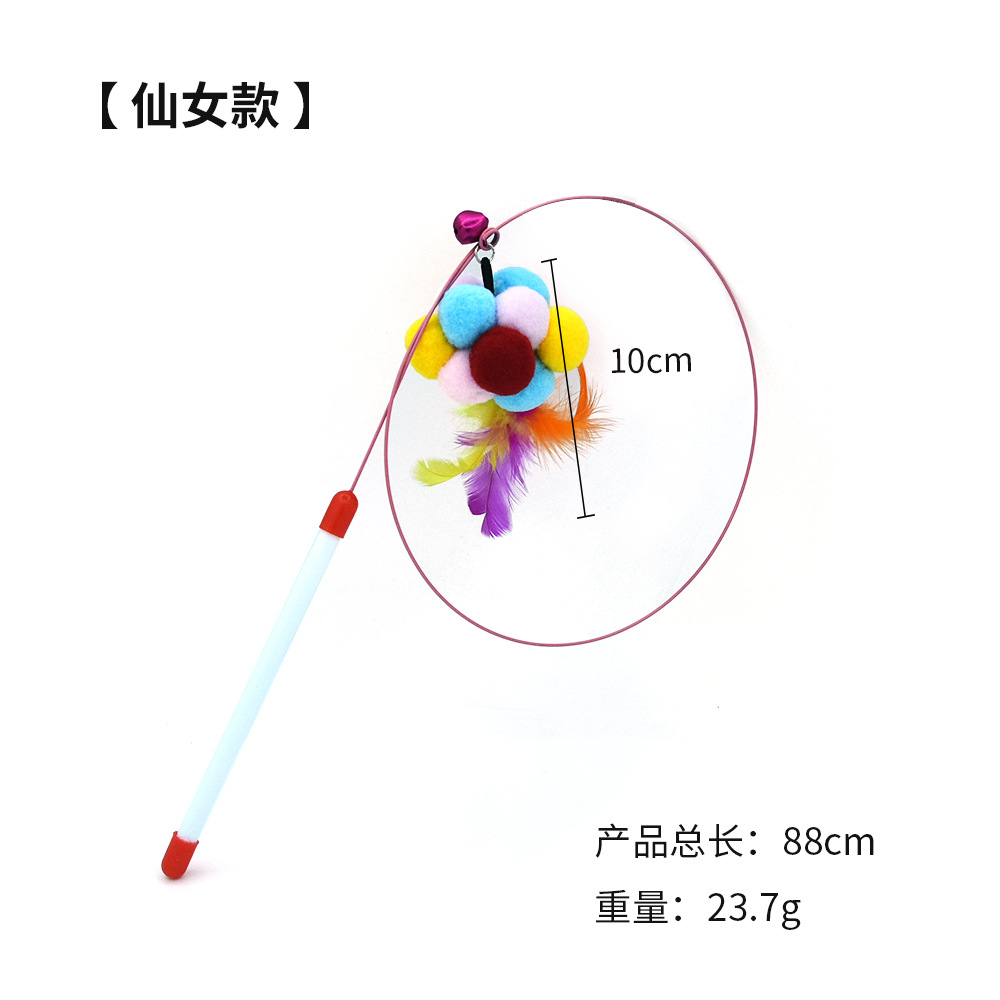 跨境新款猫咪宠物玩具带羽毛铃铛金属钢丝仙女伸缩逗猫棒猫猫用品