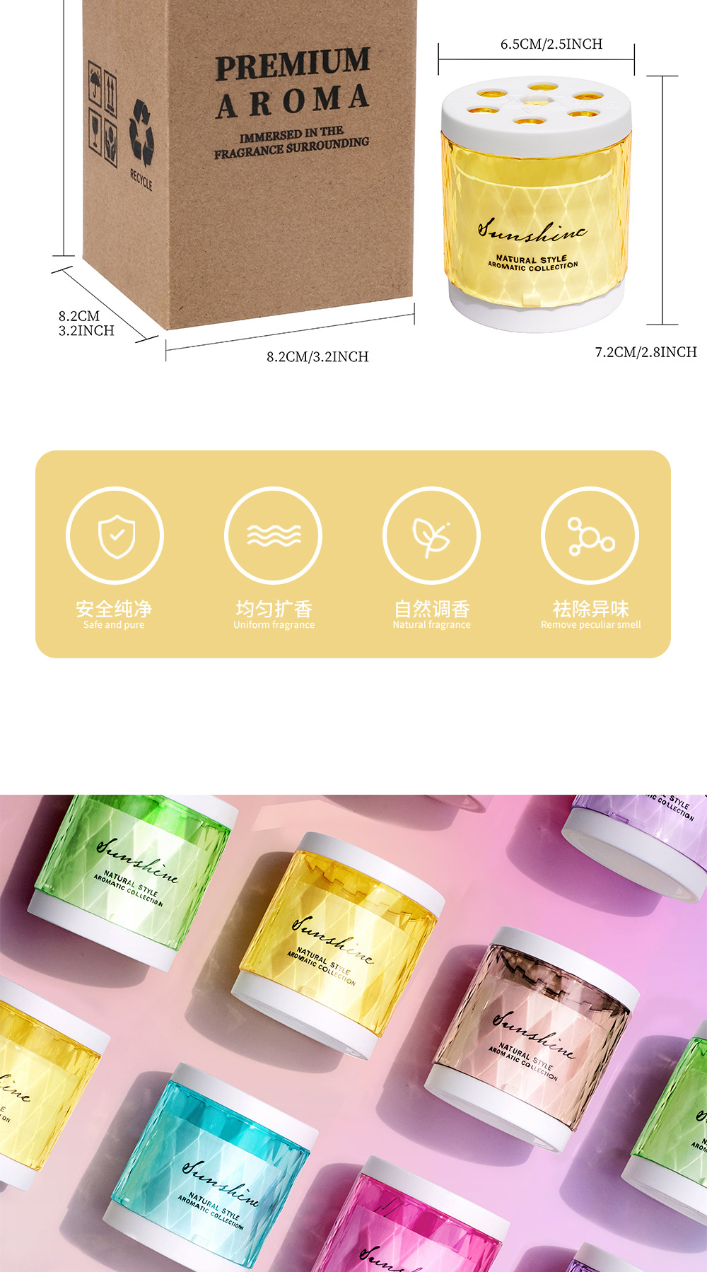 六星芒炫彩无火香薰固体车载香氛厕所持久散香除臭香膏空气清新剂