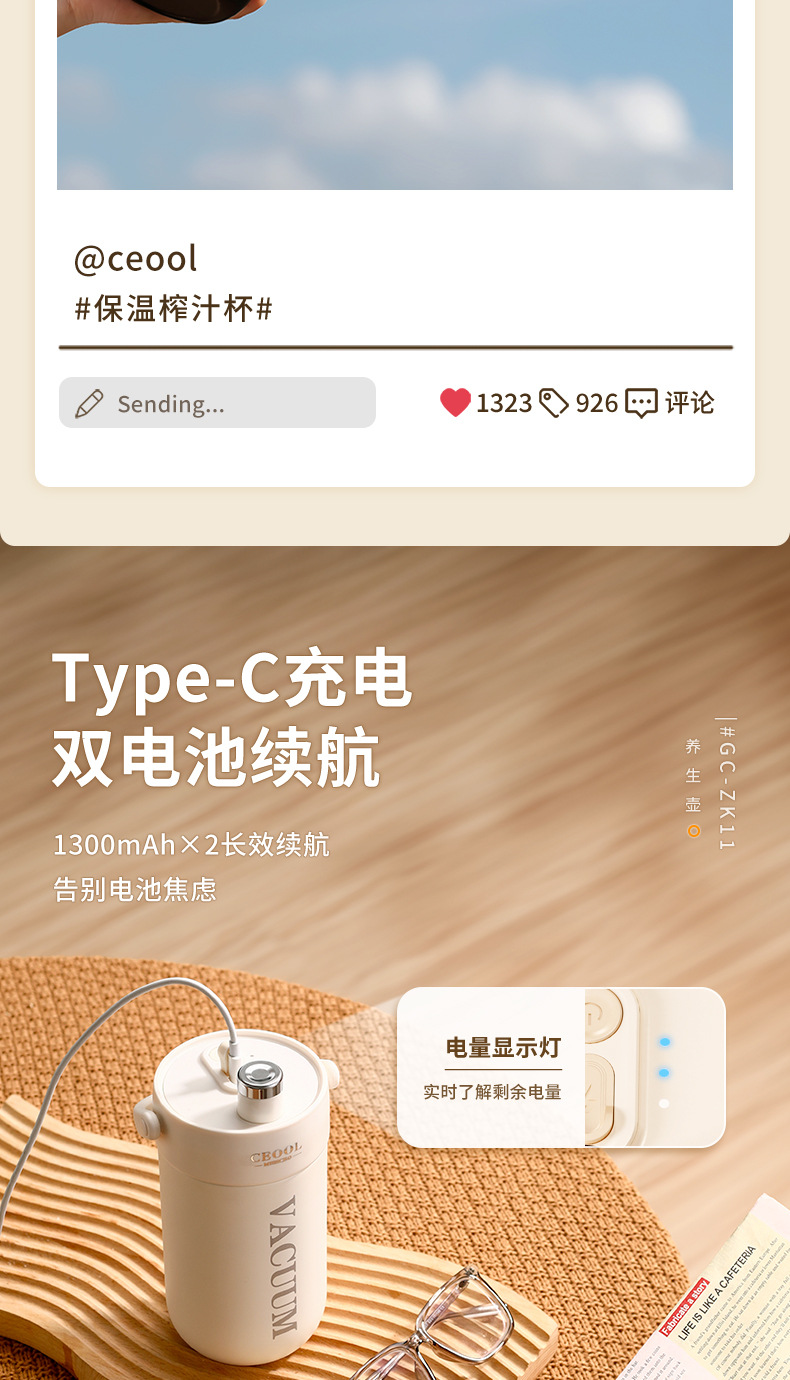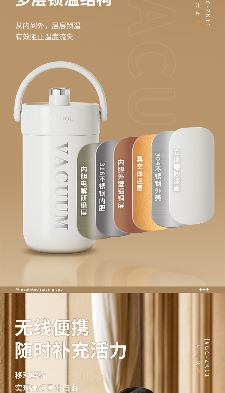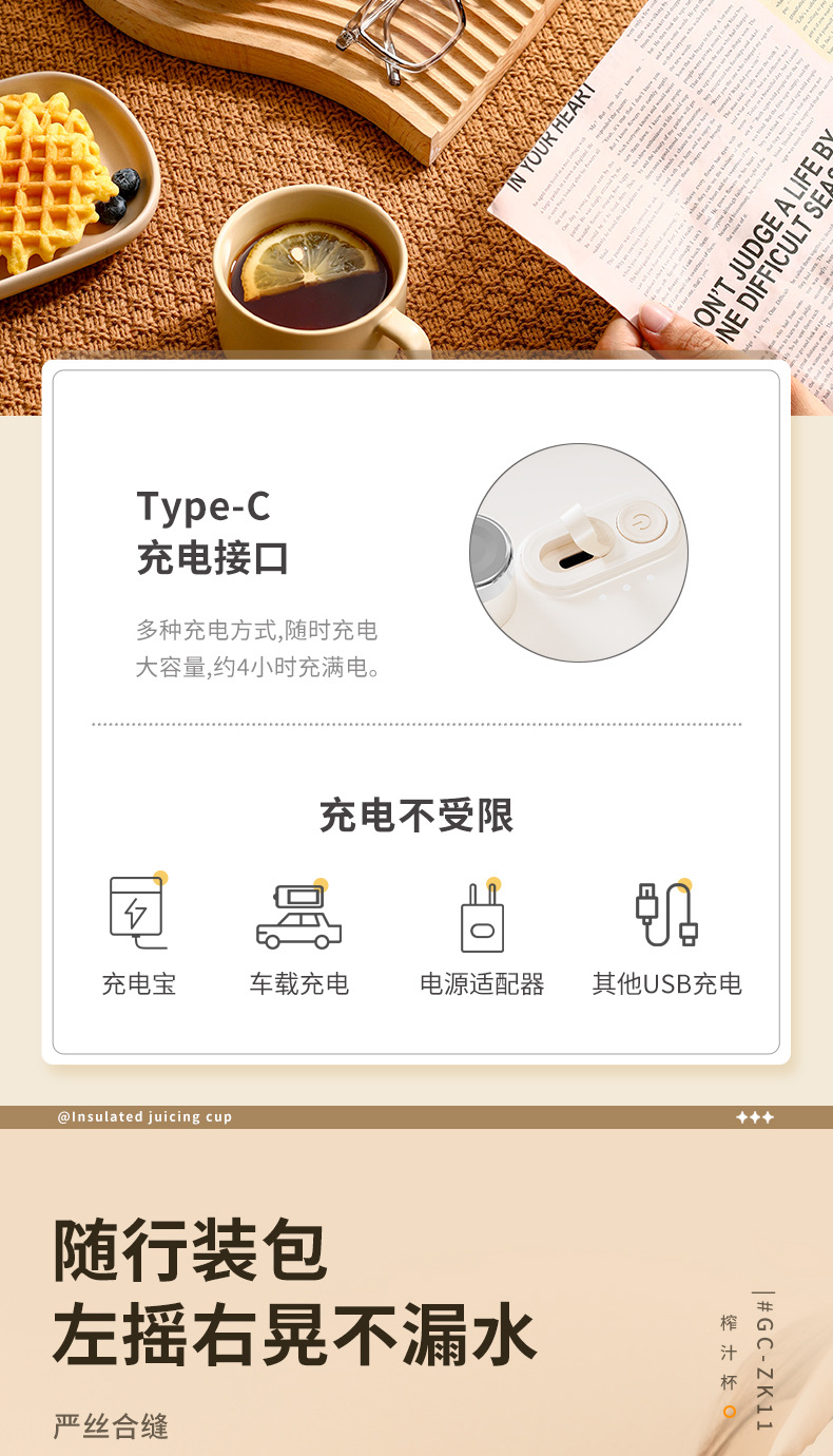 CEOOL总裁小姐 2024年新款水果榨汁机便携式小型榨汁杯家用果汁杯