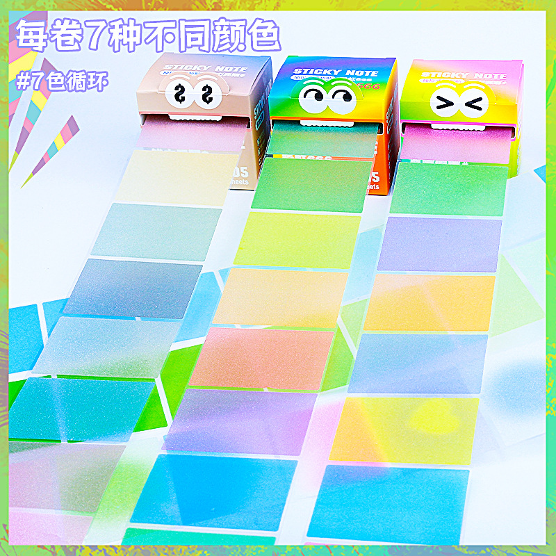 渐变可抽拉式多巴胺便利贴透明磨砂珠光材质高颜值撕除不留痕便签