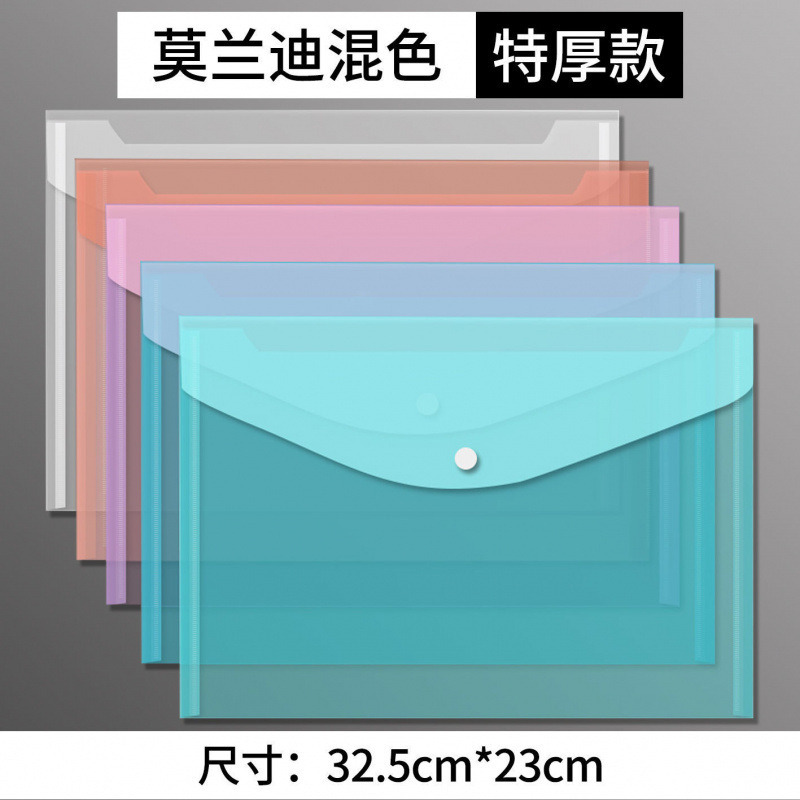 简约透明按扣文件袋加厚防水A4试卷收纳分类文件夹办公学习用