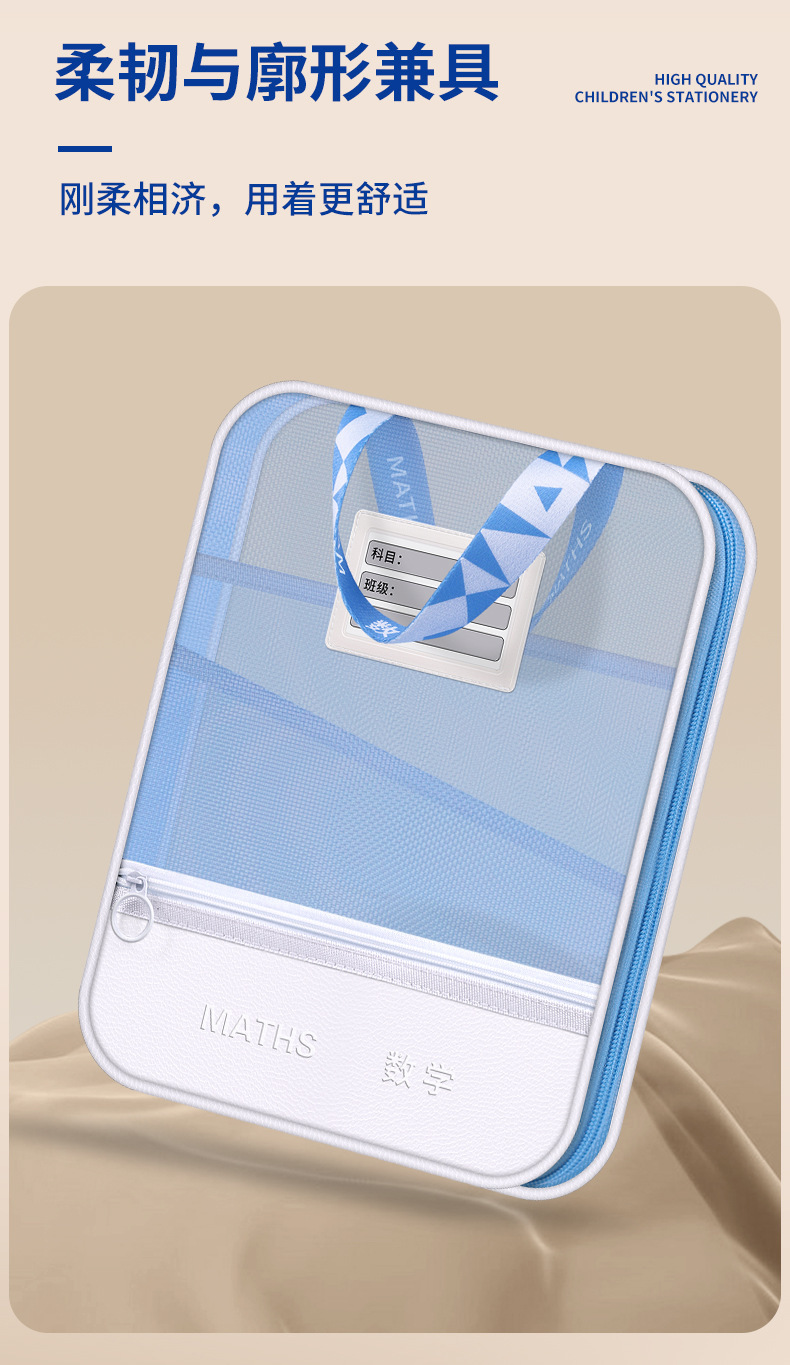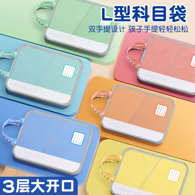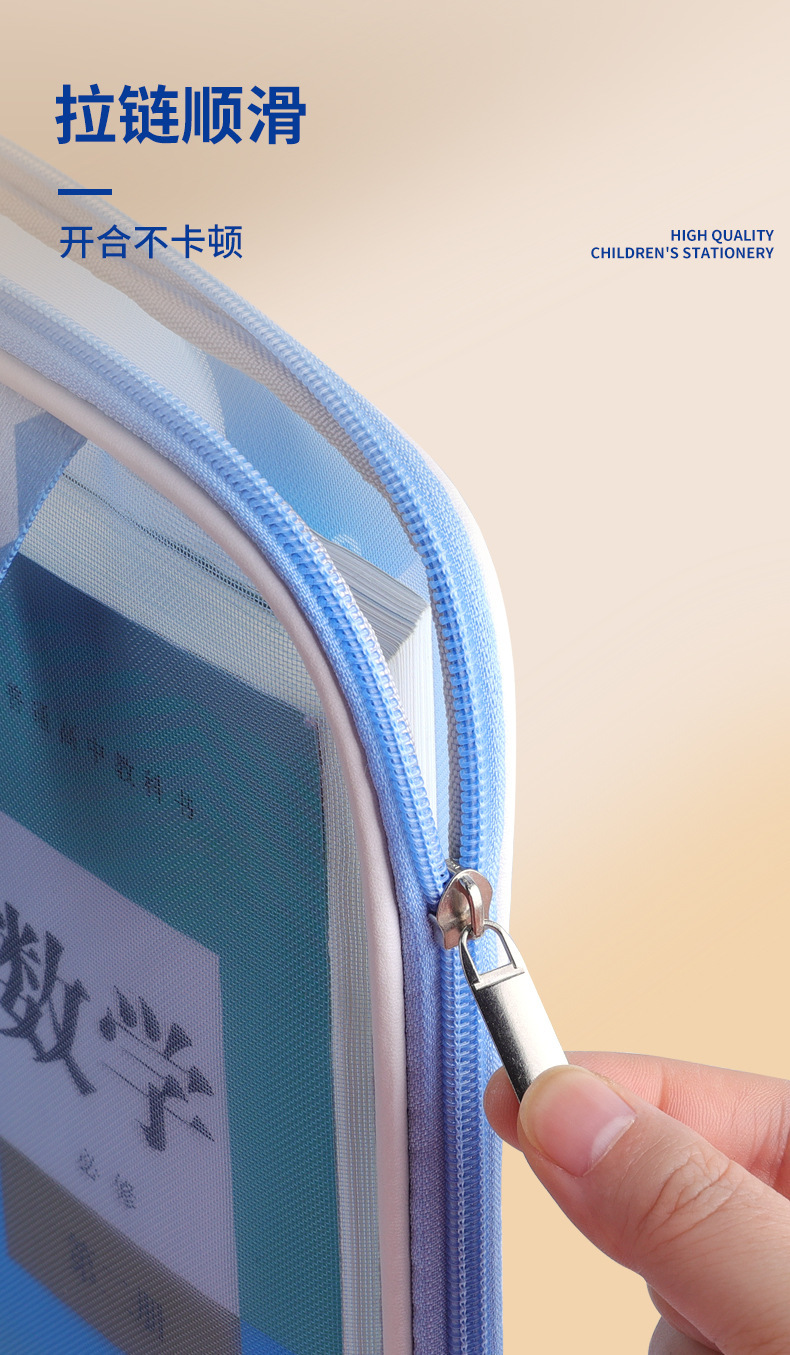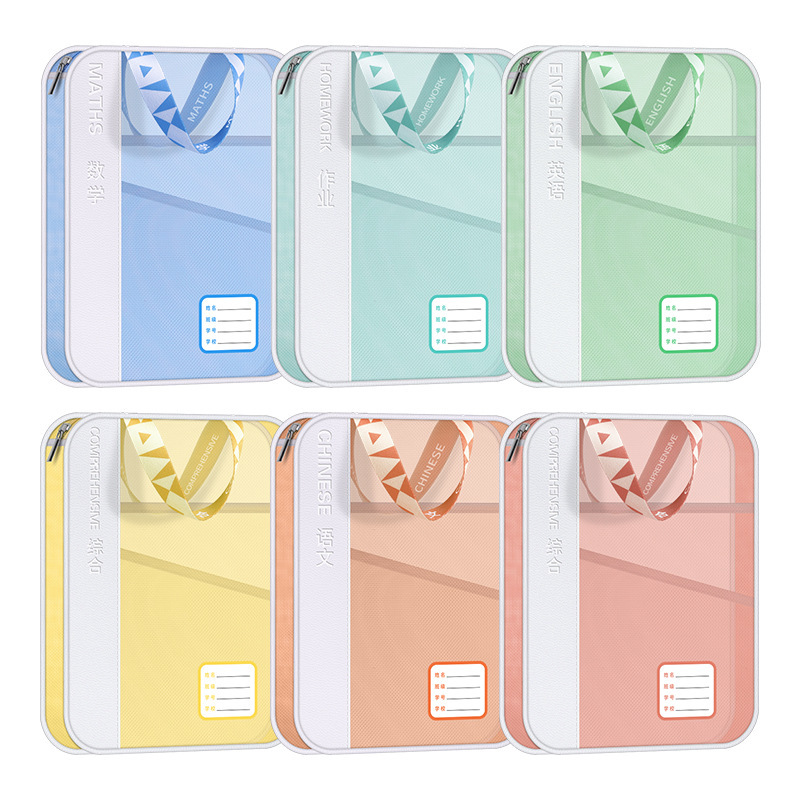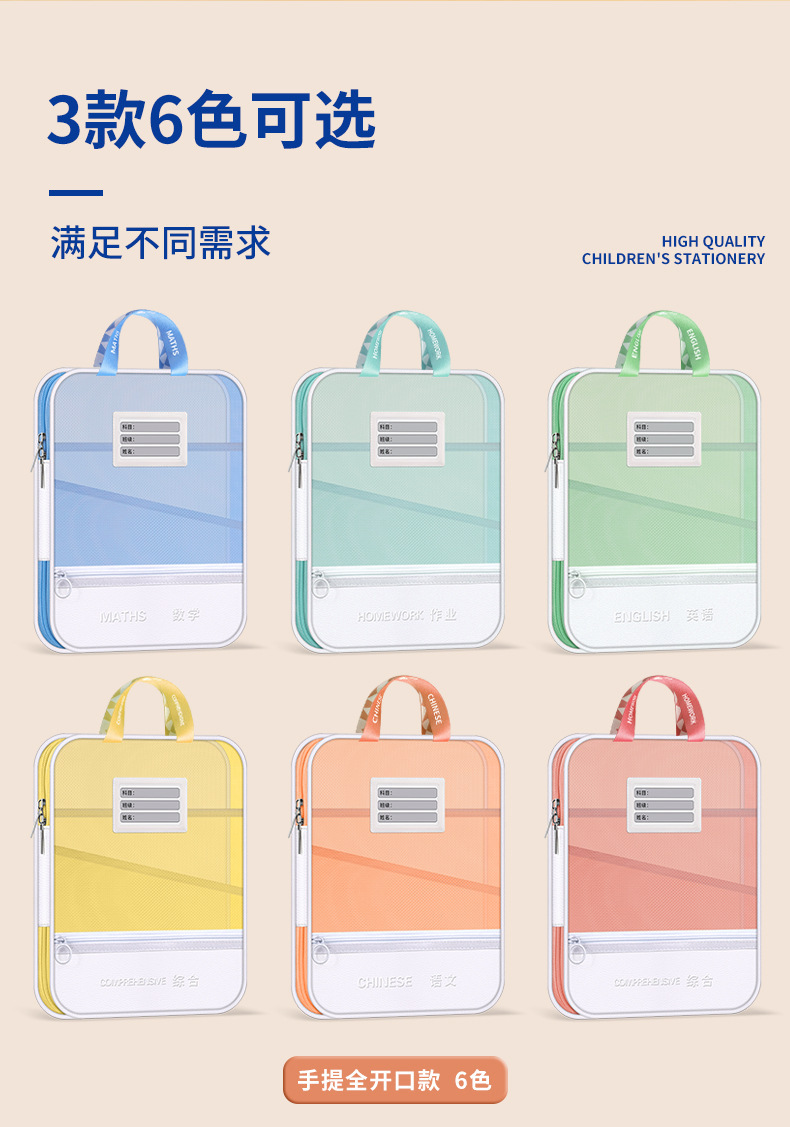 手提多功能学科文件袋pu网纱学科袋资料袋学生收纳袋现货批发义乌