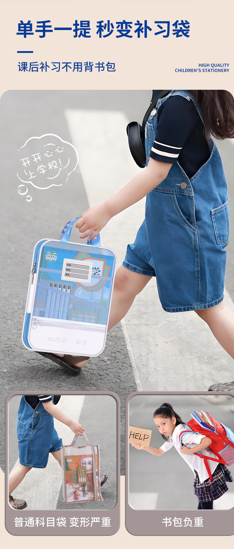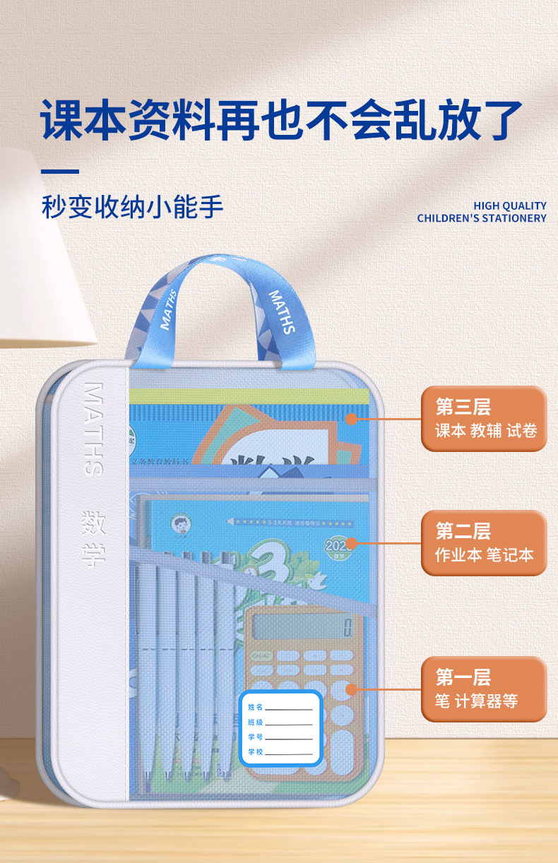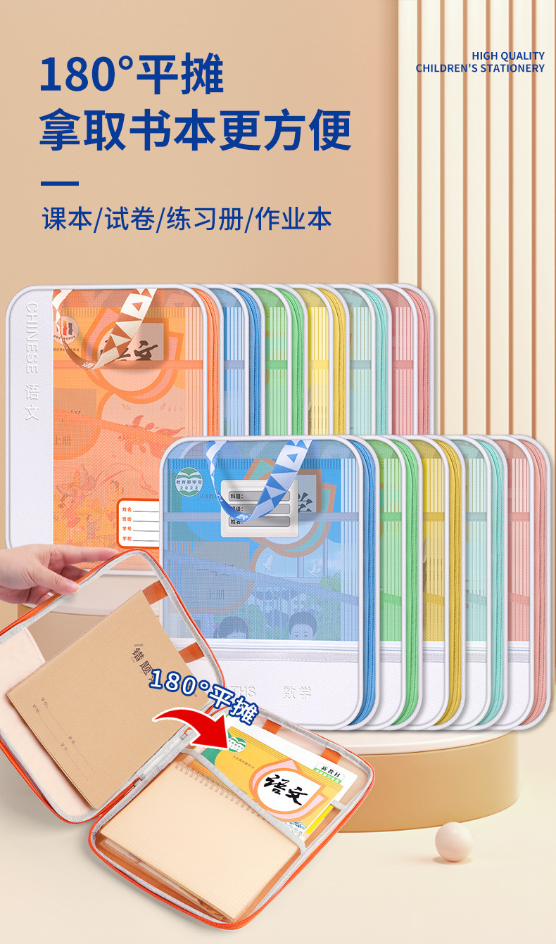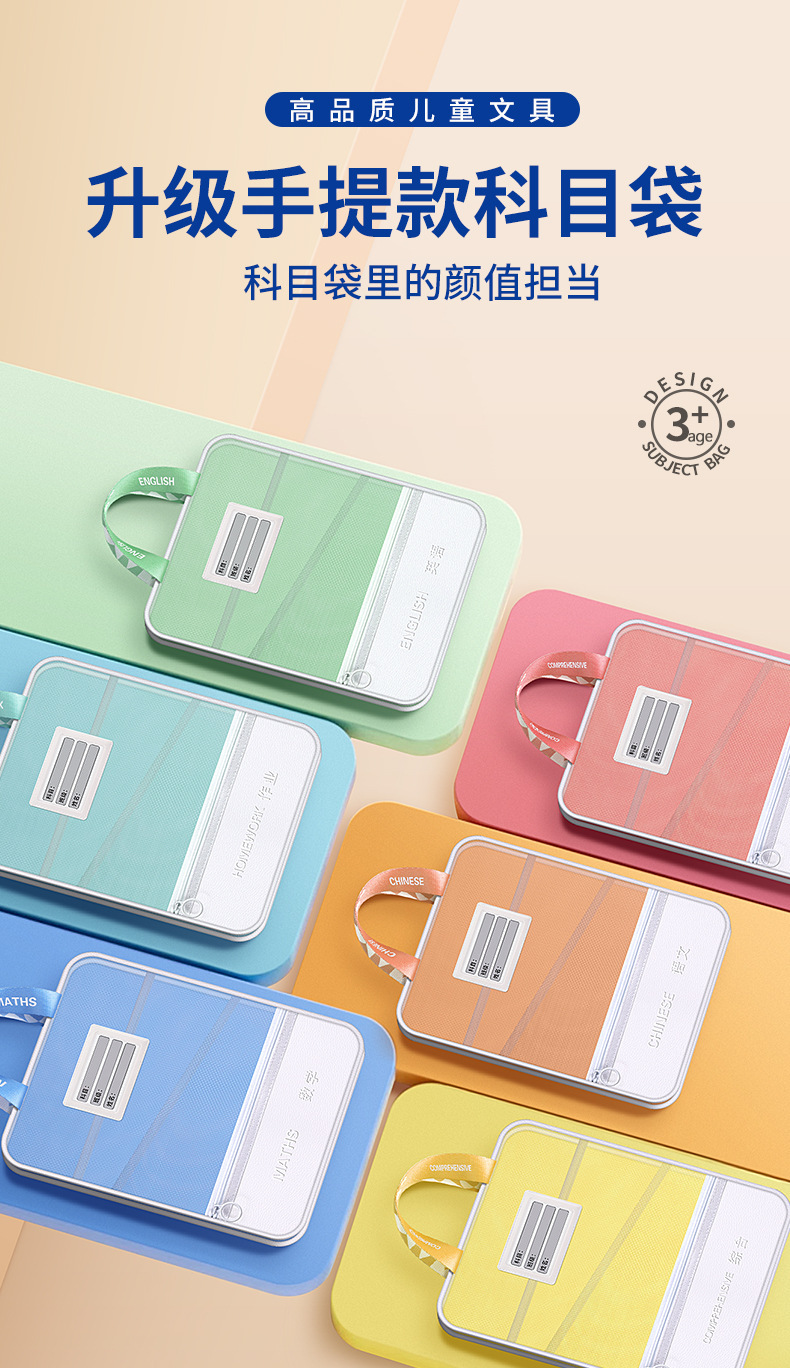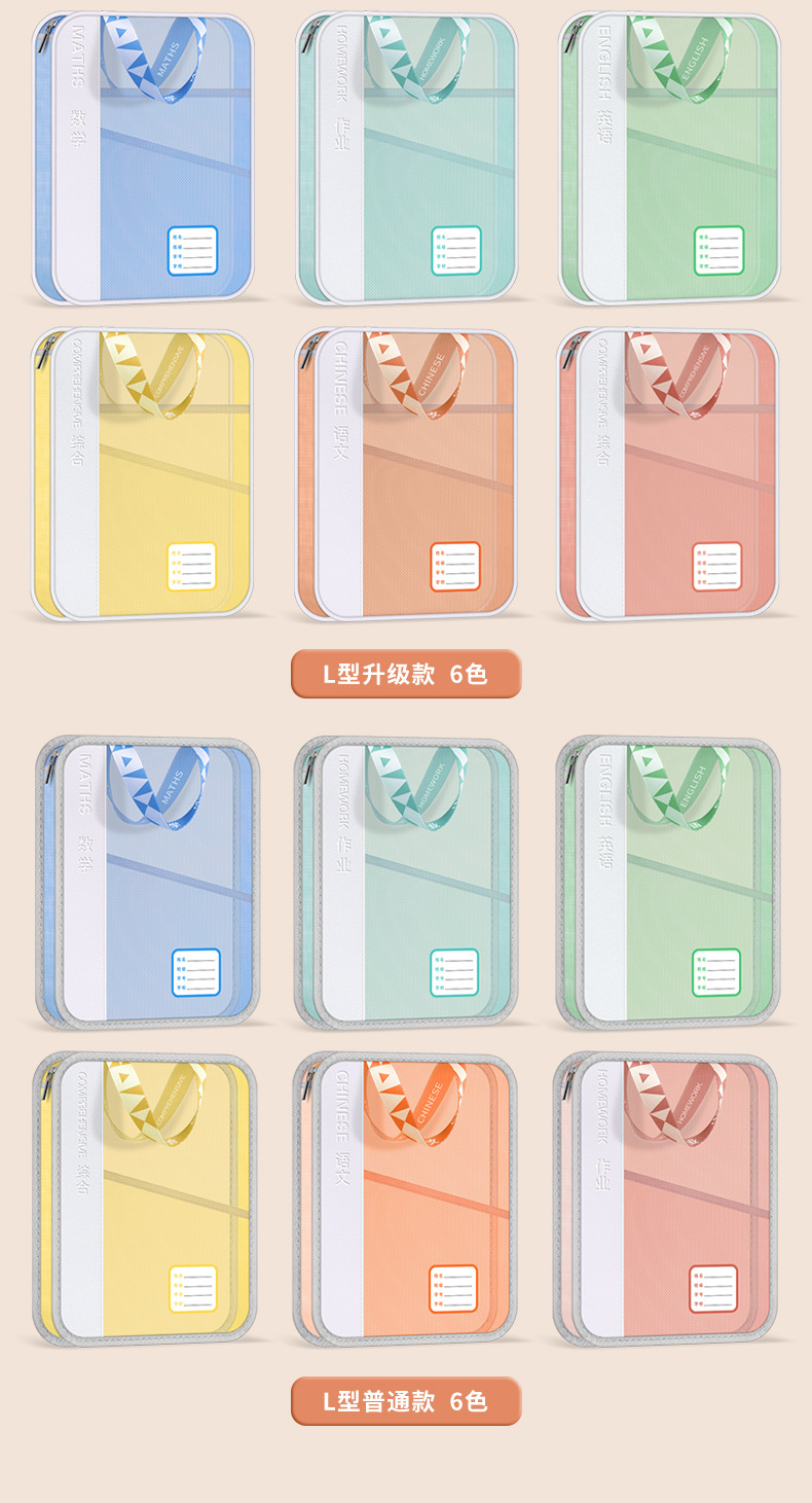 手提多功能学科文件袋pu网纱学科袋资料袋学生收纳袋现货批发义乌