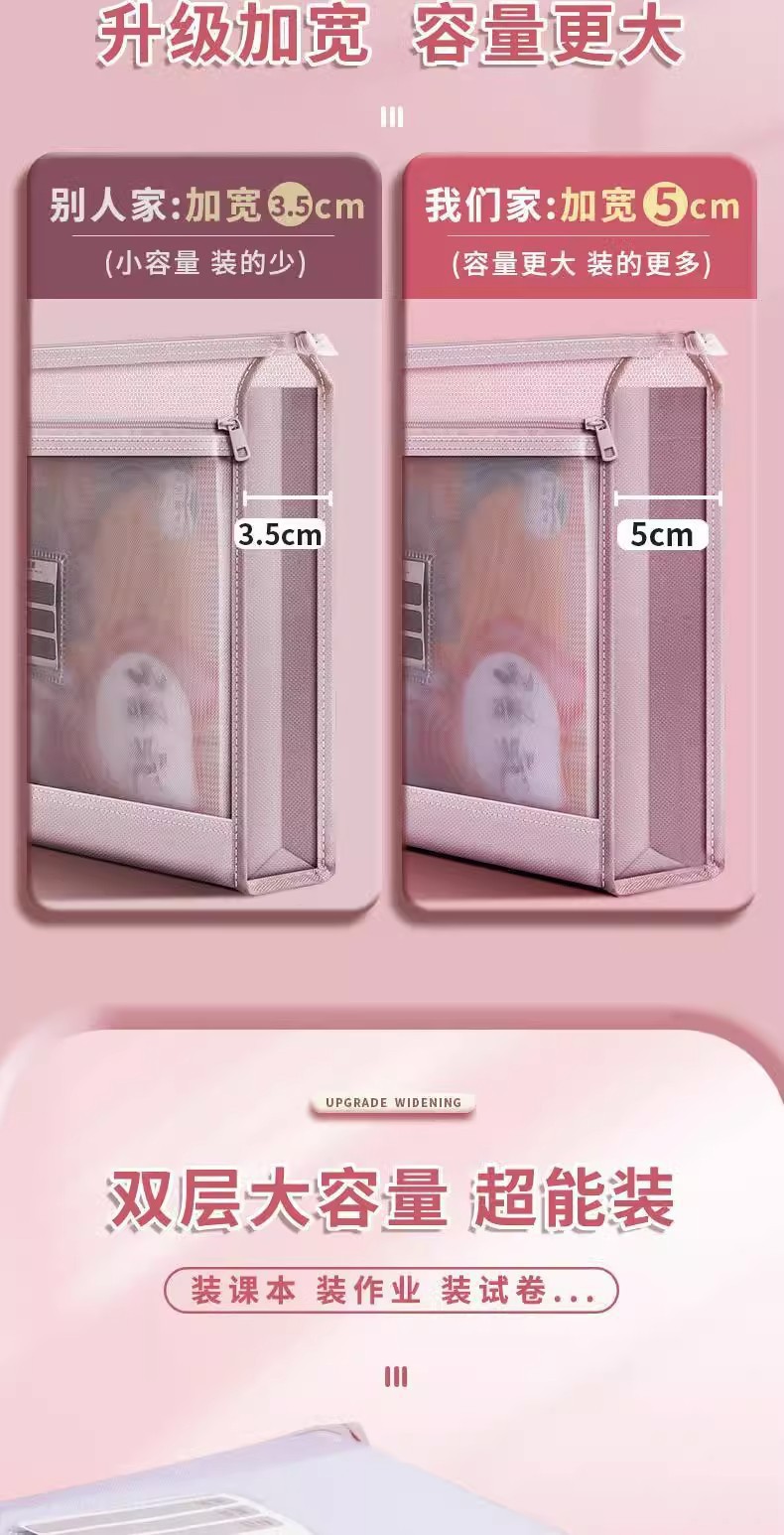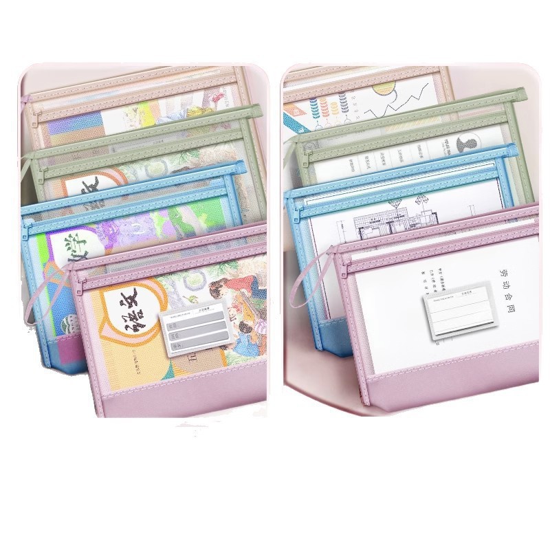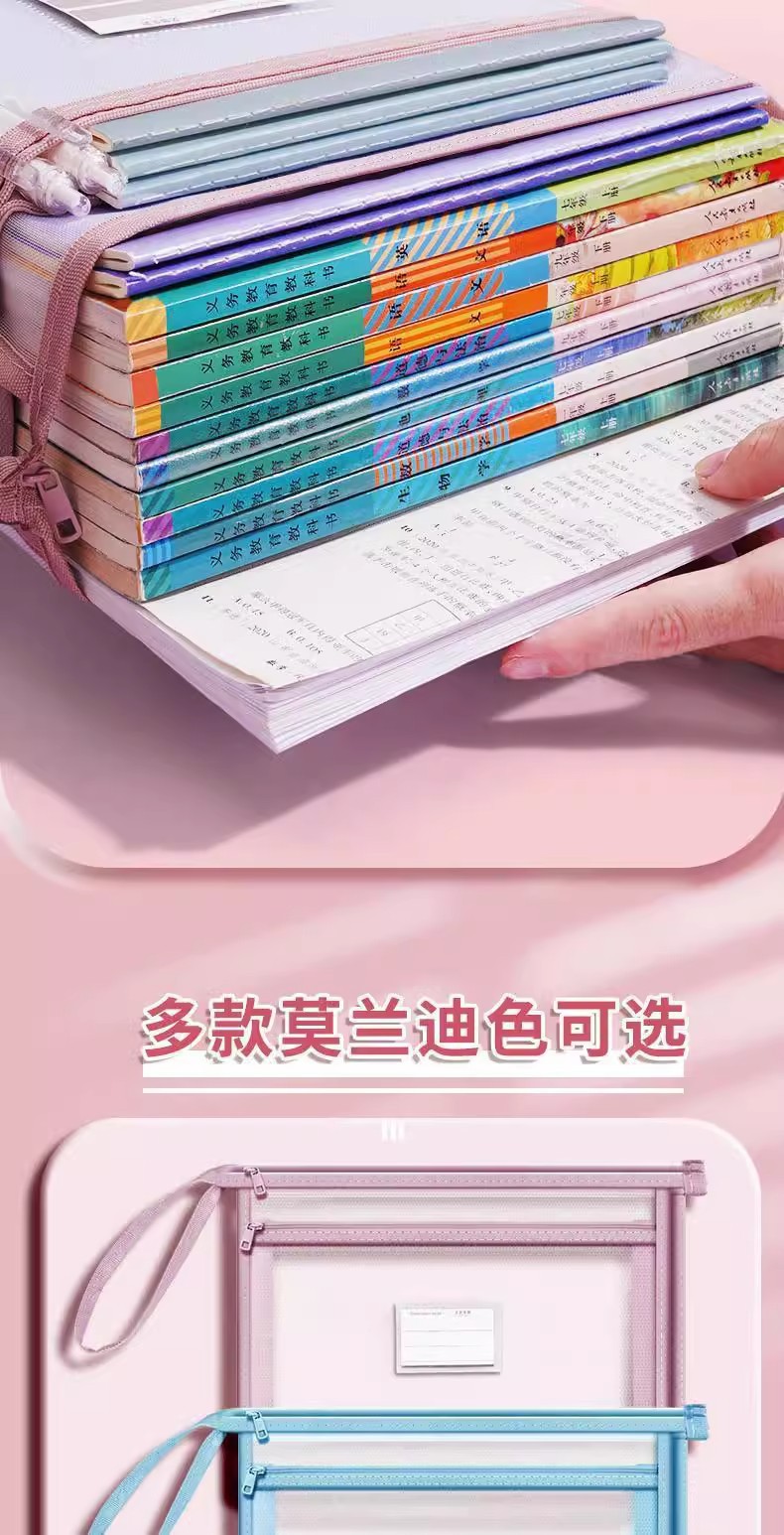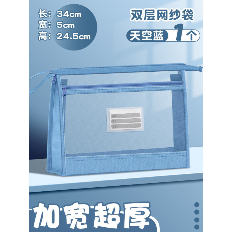 立体网纱科目袋A4加厚透明文件袋大容量拉链收纳袋试卷分类手提包
