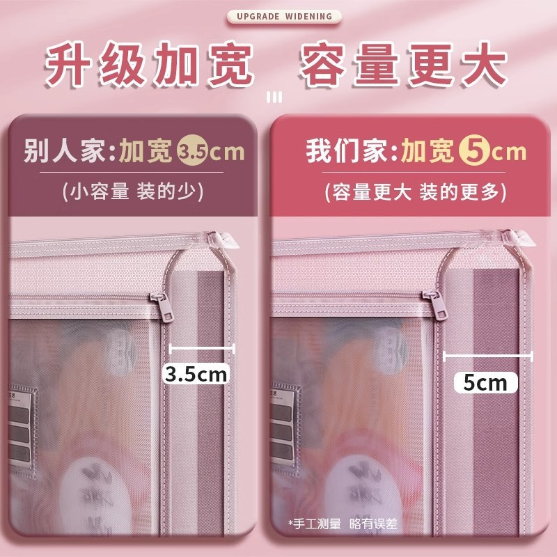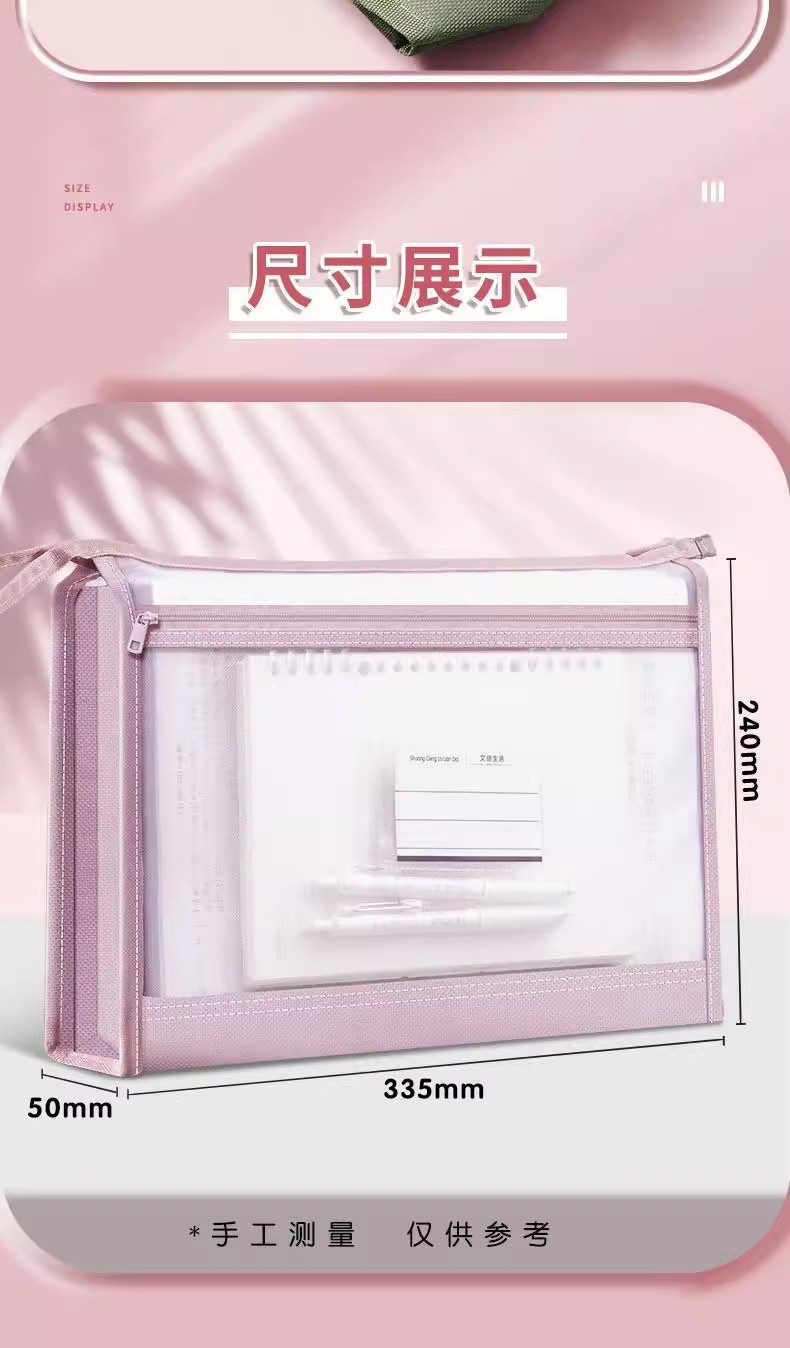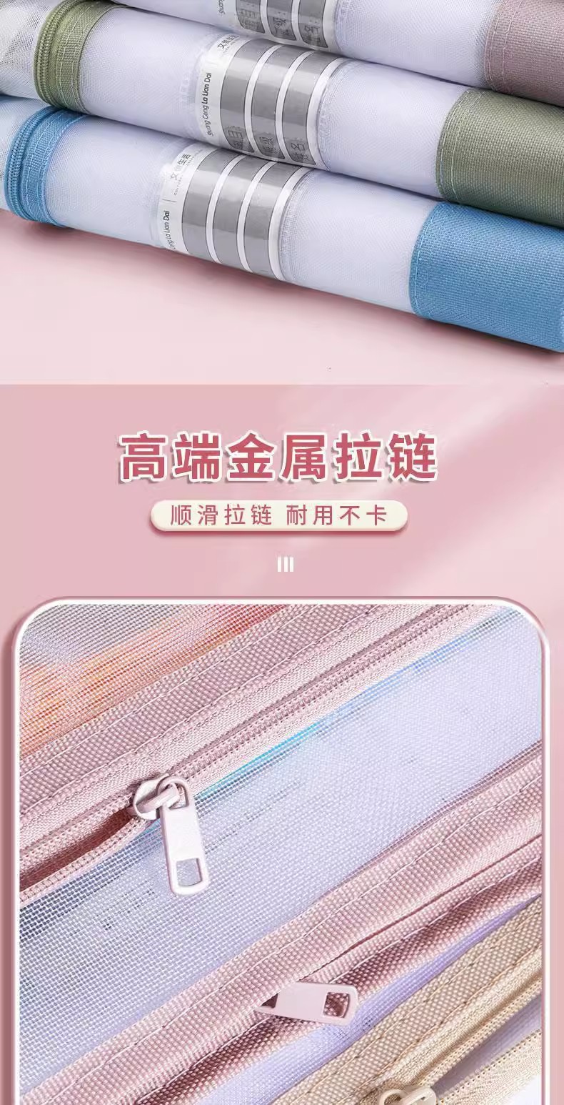 立体网纱科目袋A4加厚透明文件袋大容量拉链收纳袋试卷分类手提包