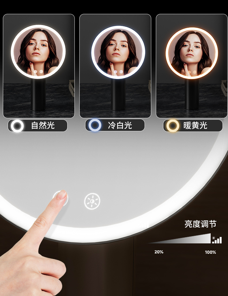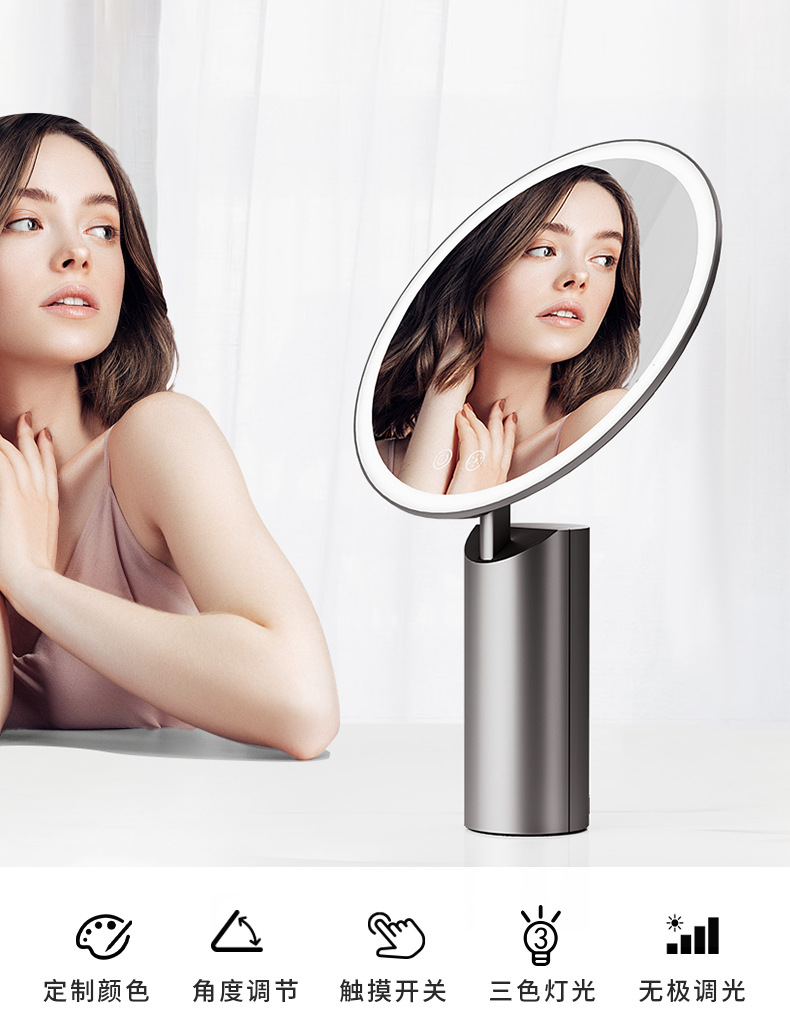 BM-2318定制LED化妆镜台式三色灯光无极调光锂电池Type-C充电镜子