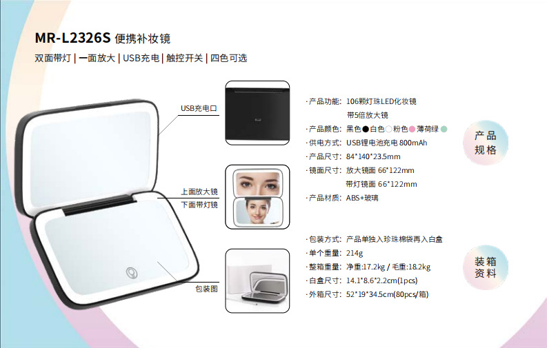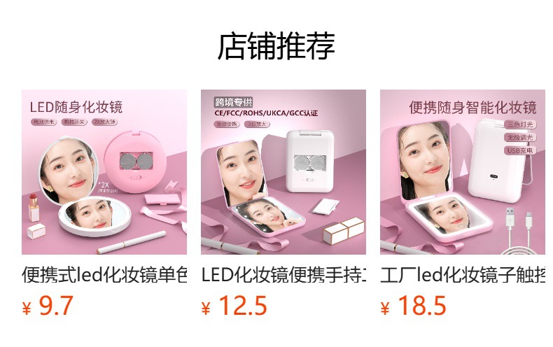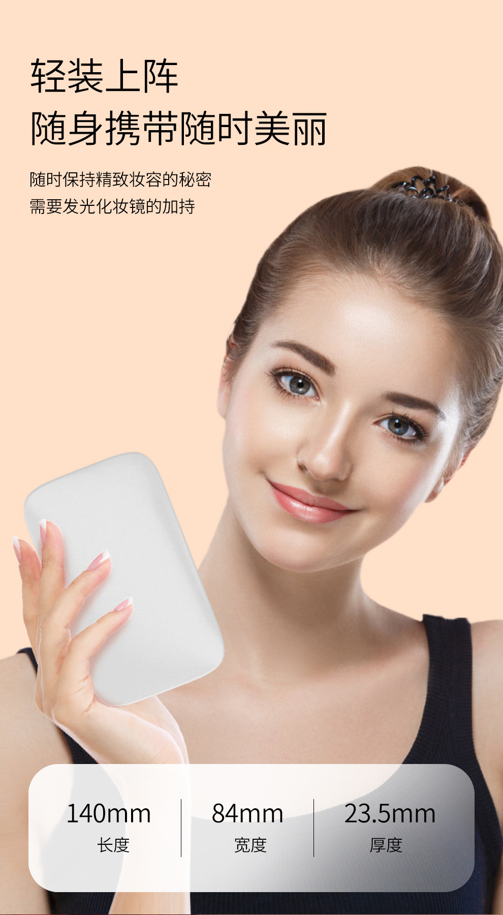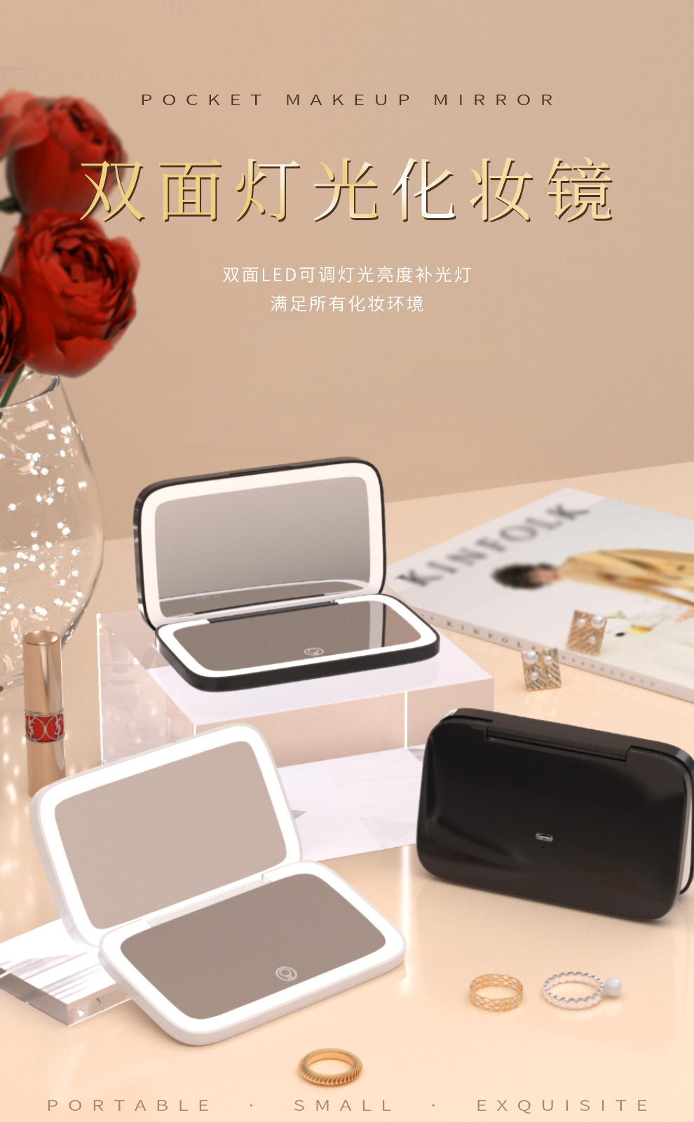 便携手持随身镜子双面补光led化妆镜三色灯光高清迷你礼品小镜子