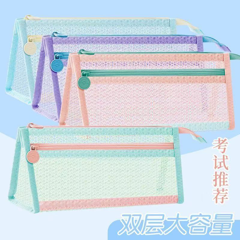 高颜值网纱笔袋大容量透明文具袋学生专用考试铅笔盒简约设计