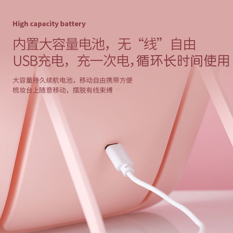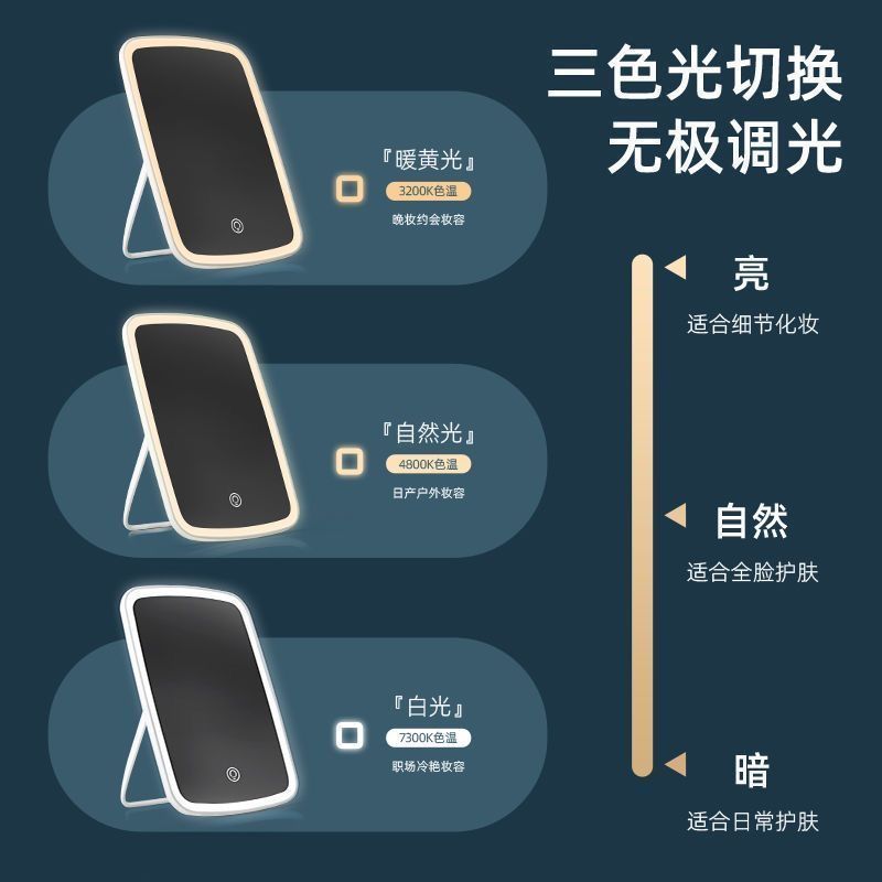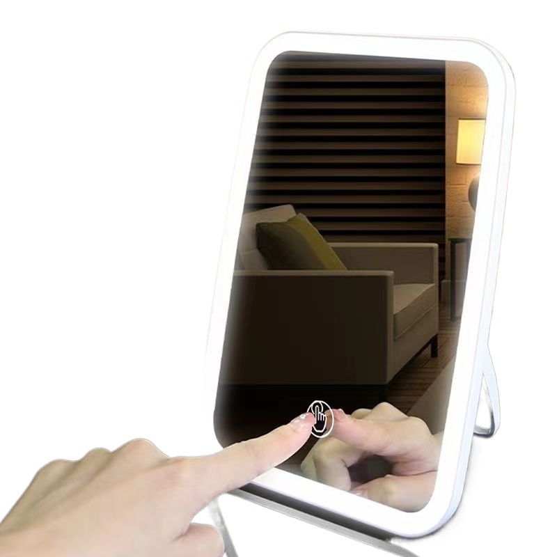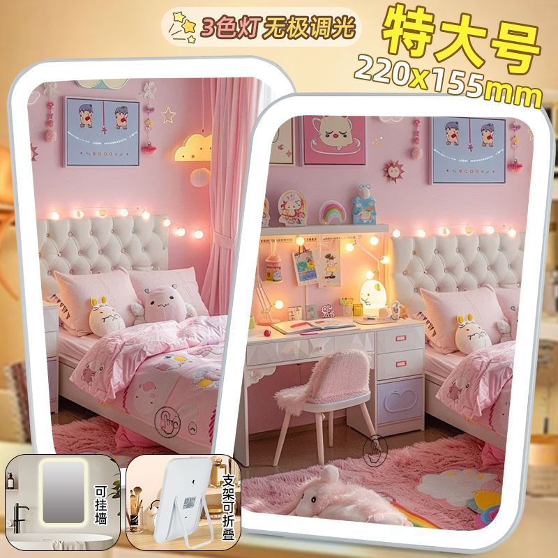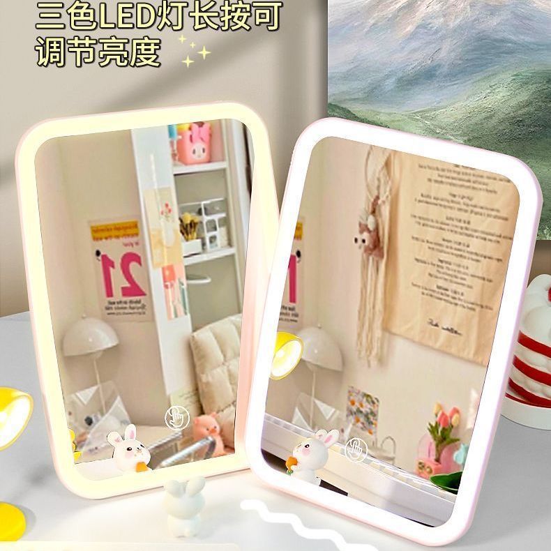 led灯化妆镜带灯镜子便携随身办公室梳妆台式桌面学生宿舍小镜子