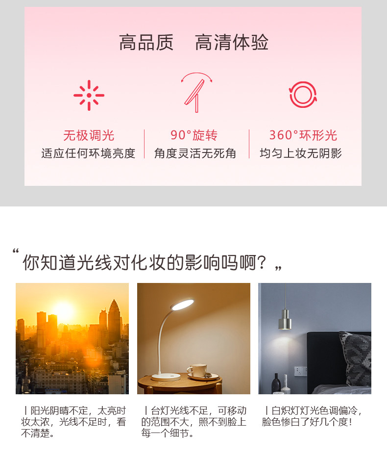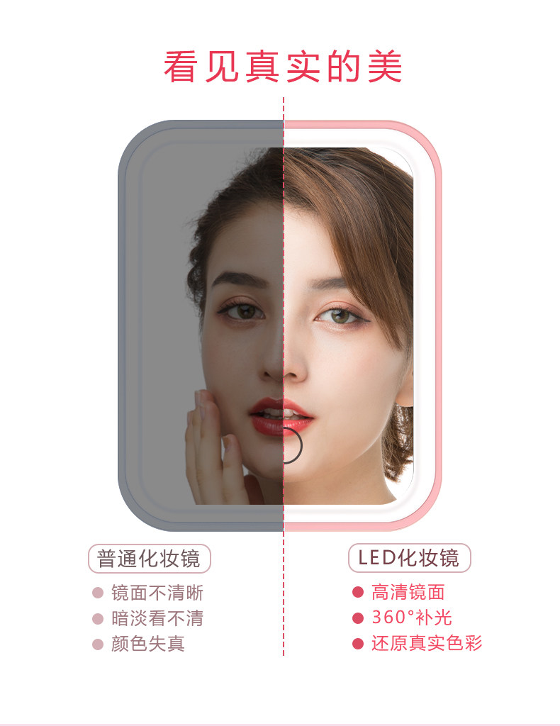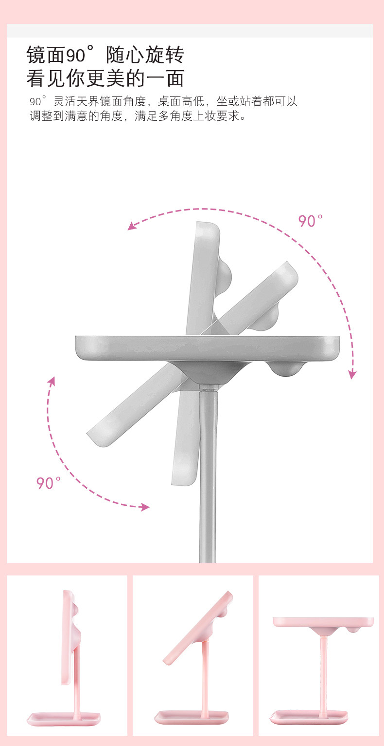 镜子化妆镜台式led灯桌面简约折叠便携带灯家用梳妆台补光灯宿舍