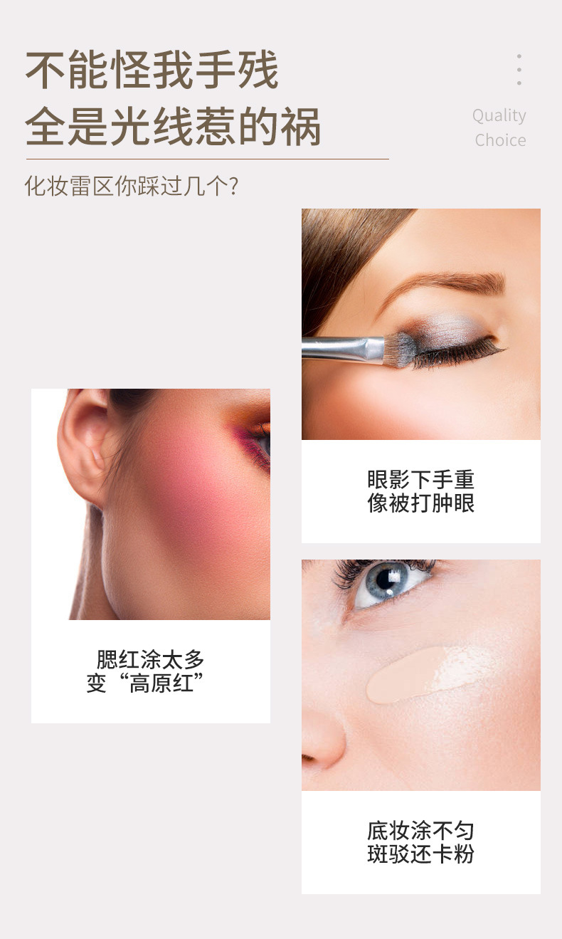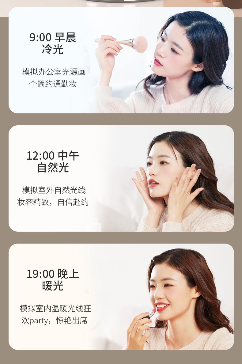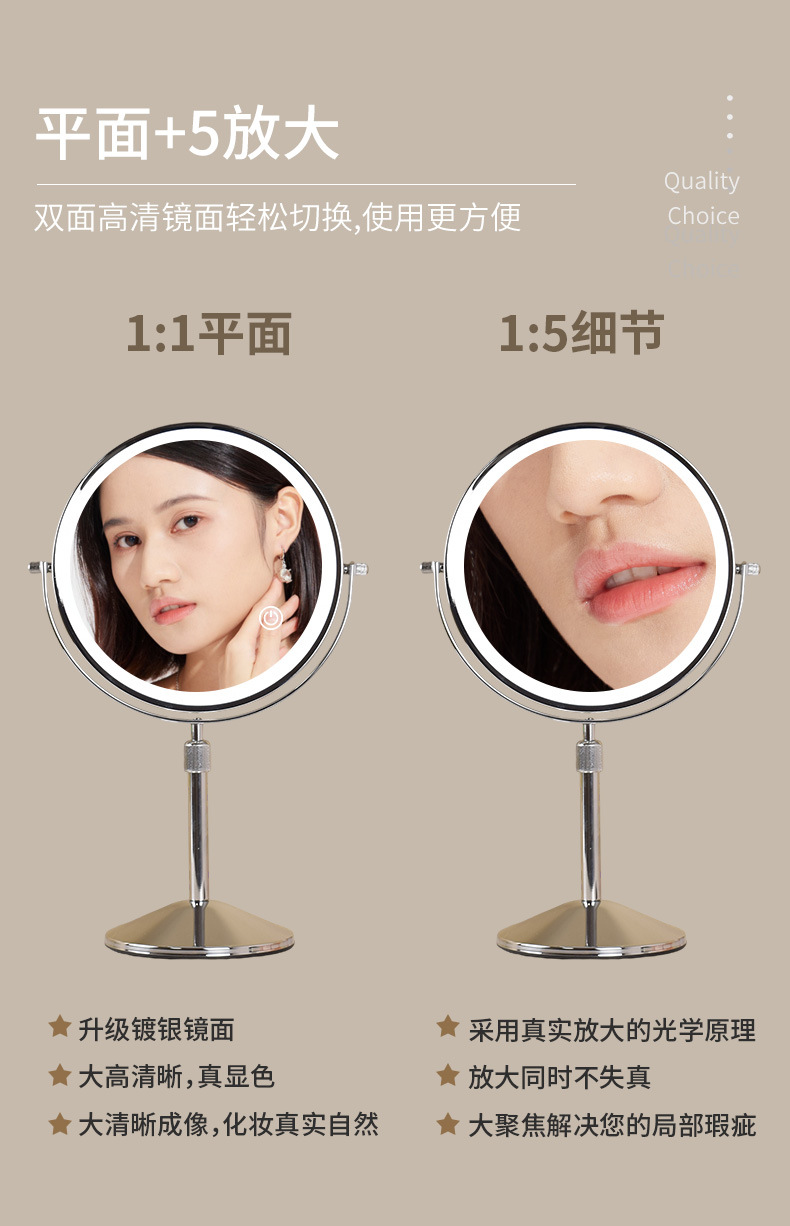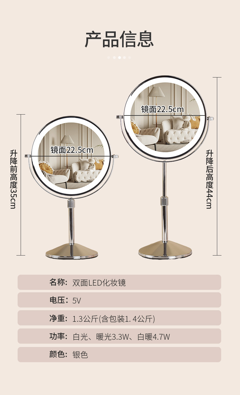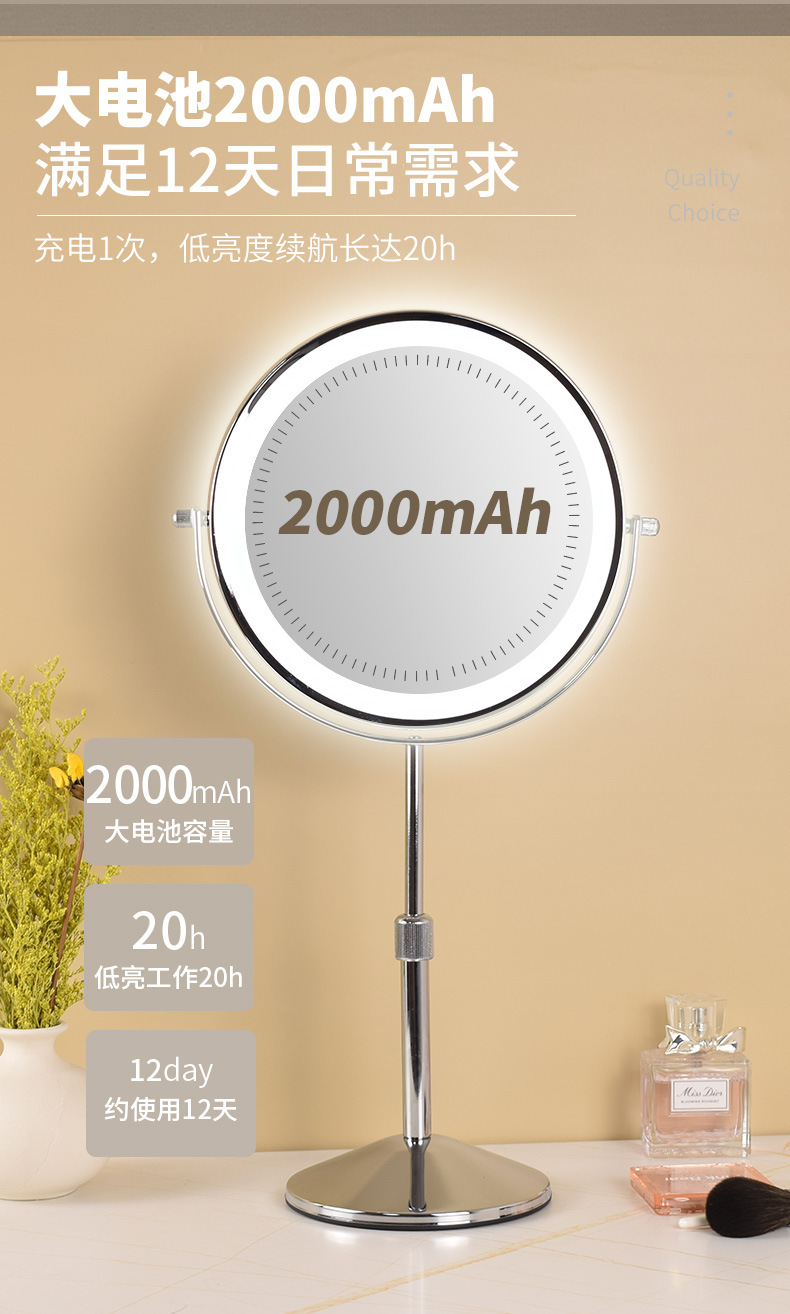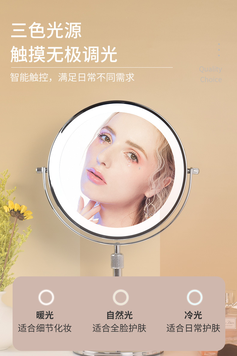 可升降LED化妆镜子双面梳妆镜带灯台式镜三色灯光美容镜可调亮度