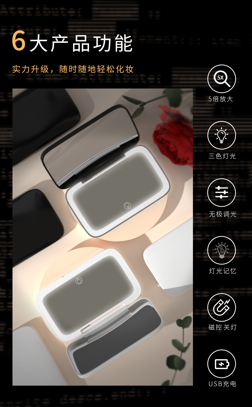 新款折叠led化妆镜子 节日礼品美妆镜带灯随身便携三色灯光手持镜