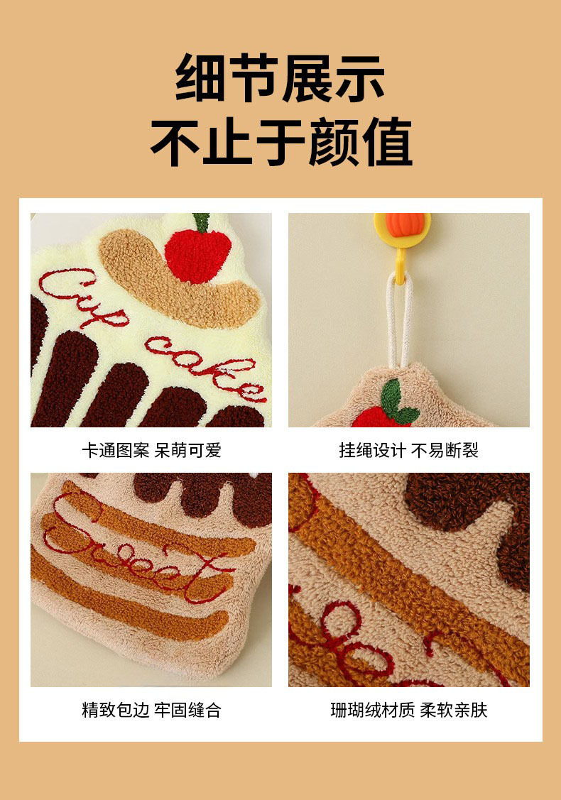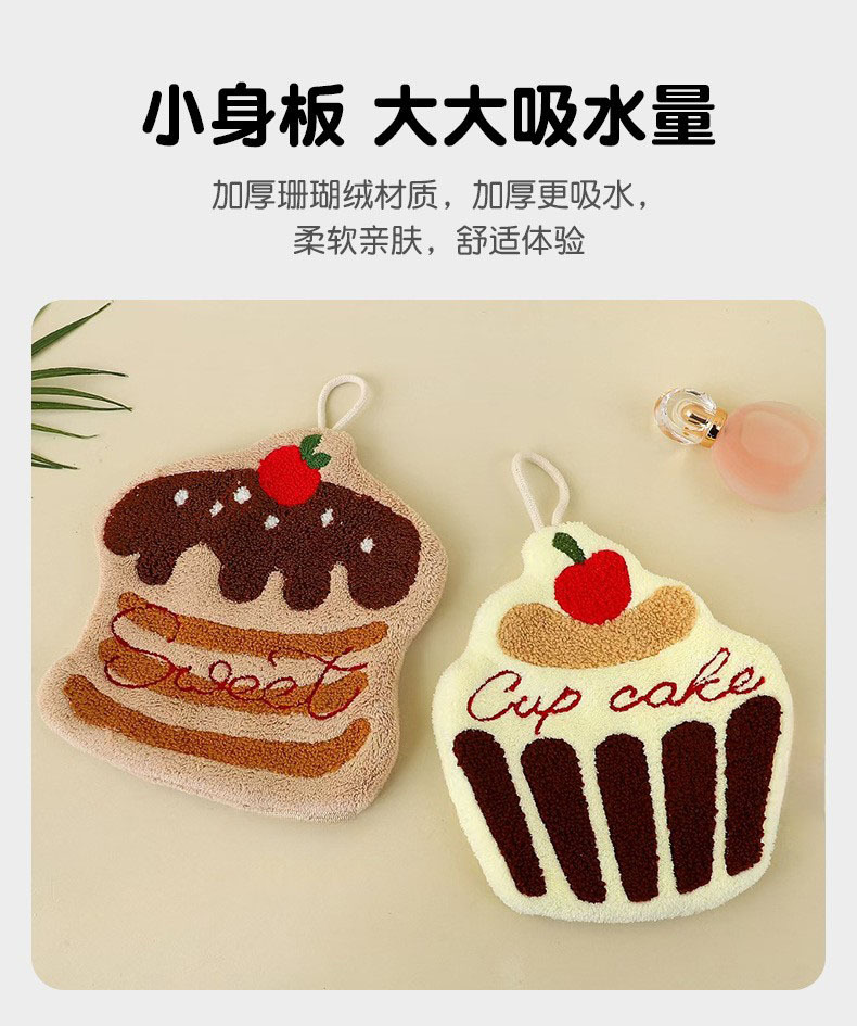 跨境珊瑚绒卡通擦手巾挂式可爱吸水速干厨房浴室洗手间擦手毛巾