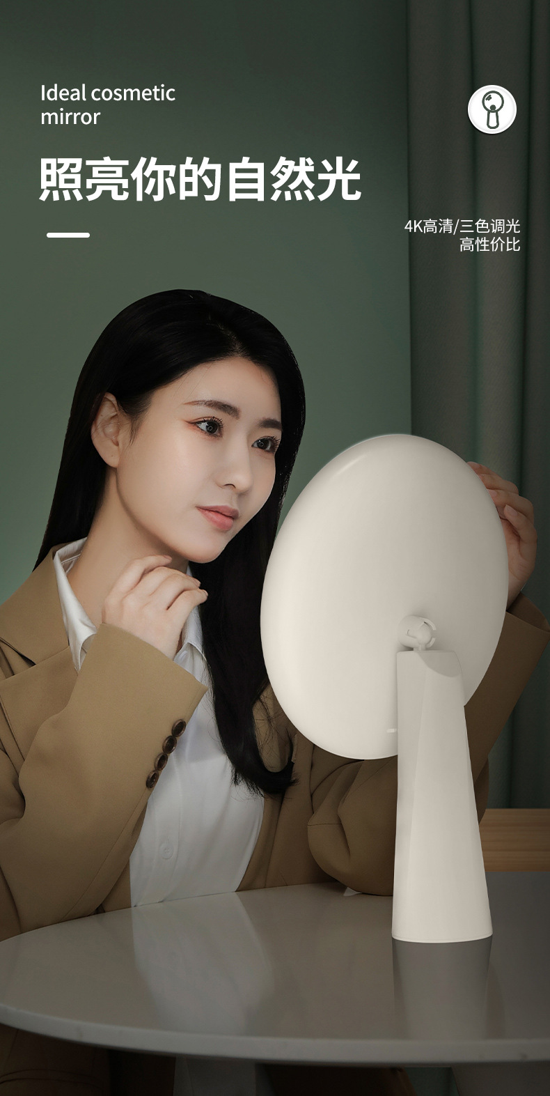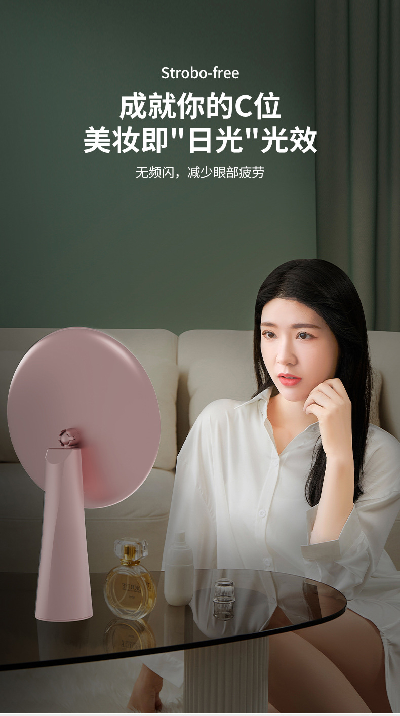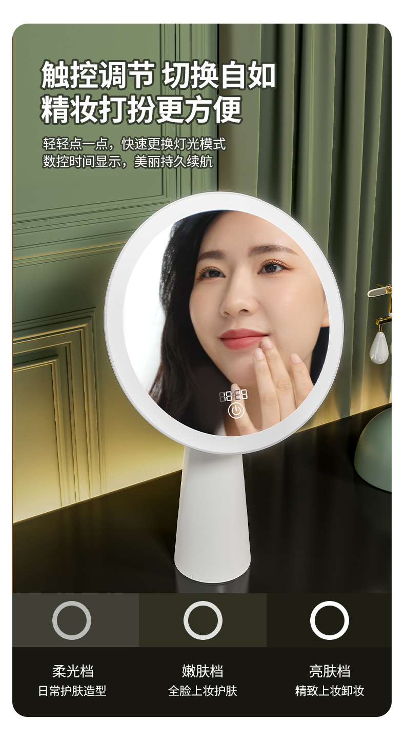 轻奢家用桌面 LED化妆镜台式补光灯三色柔光智能日光镜梳妆化妆镜