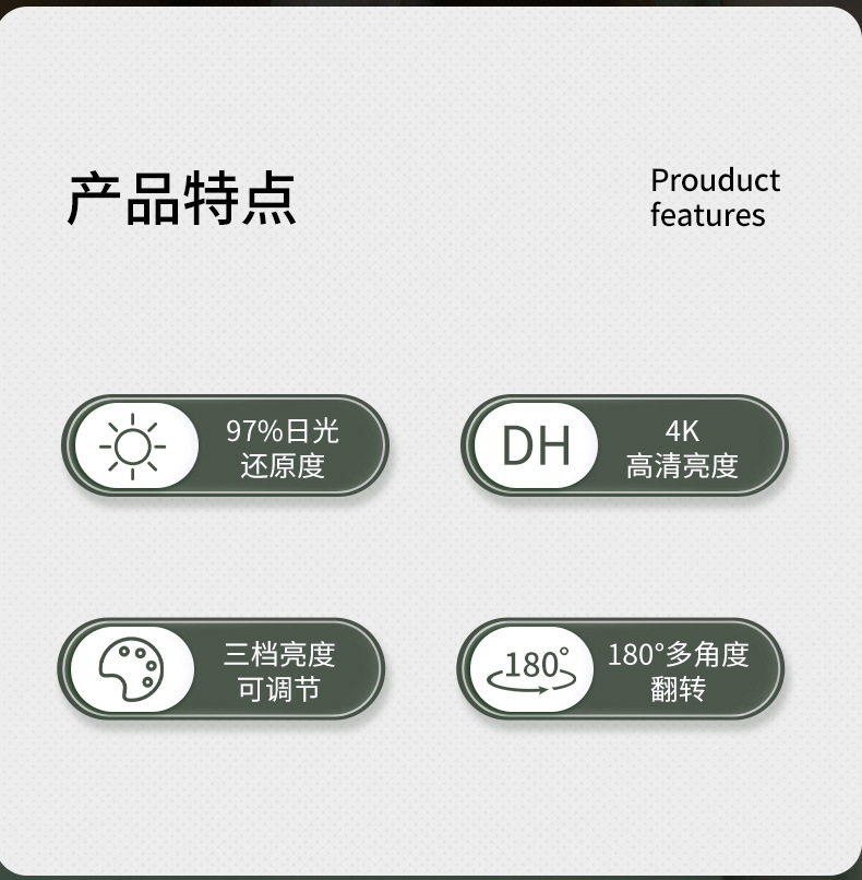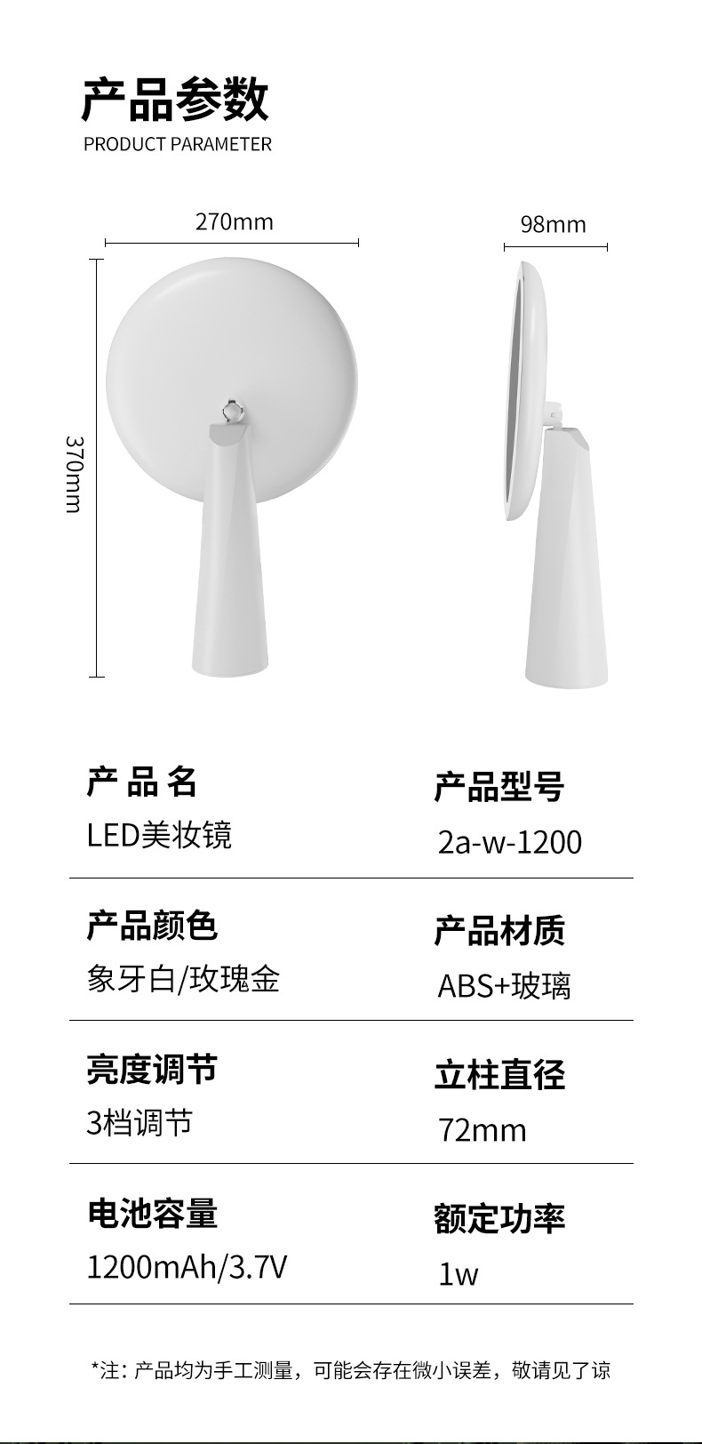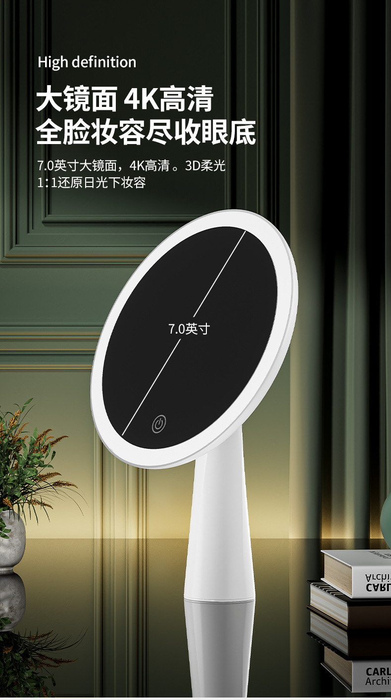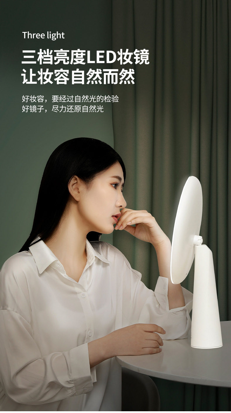 轻奢家用桌面 LED化妆镜台式补光灯三色柔光智能日光镜梳妆化妆镜