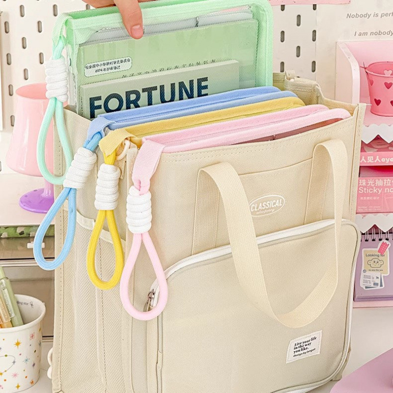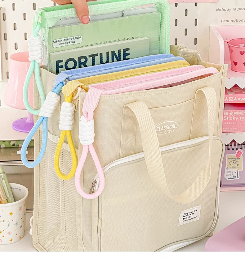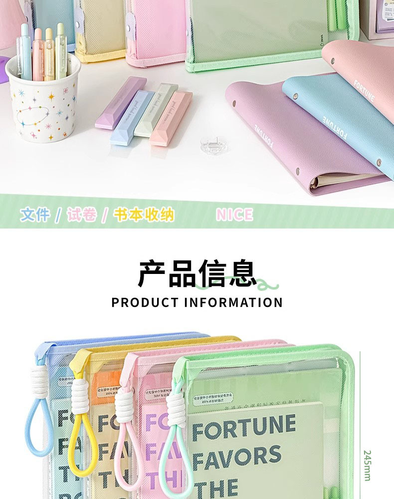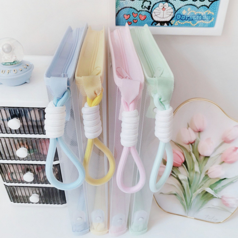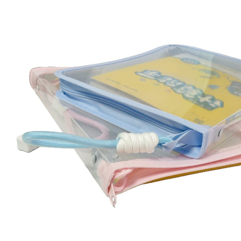 文件袋透明提手拉链试卷文件夹学生手提卡通带夹板硬壳收纳袋批发