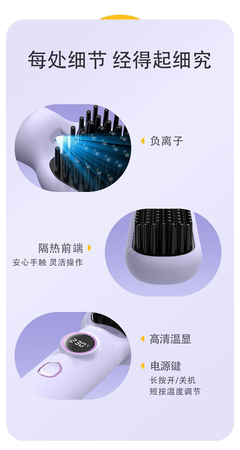 跨境新款直发梳负离子不伤发便携直卷两用懒人直发器工厂直供批发