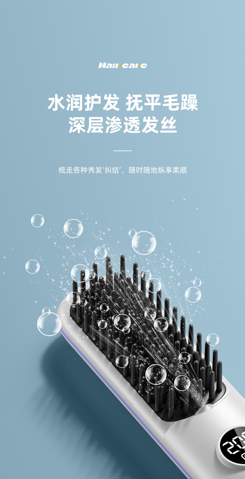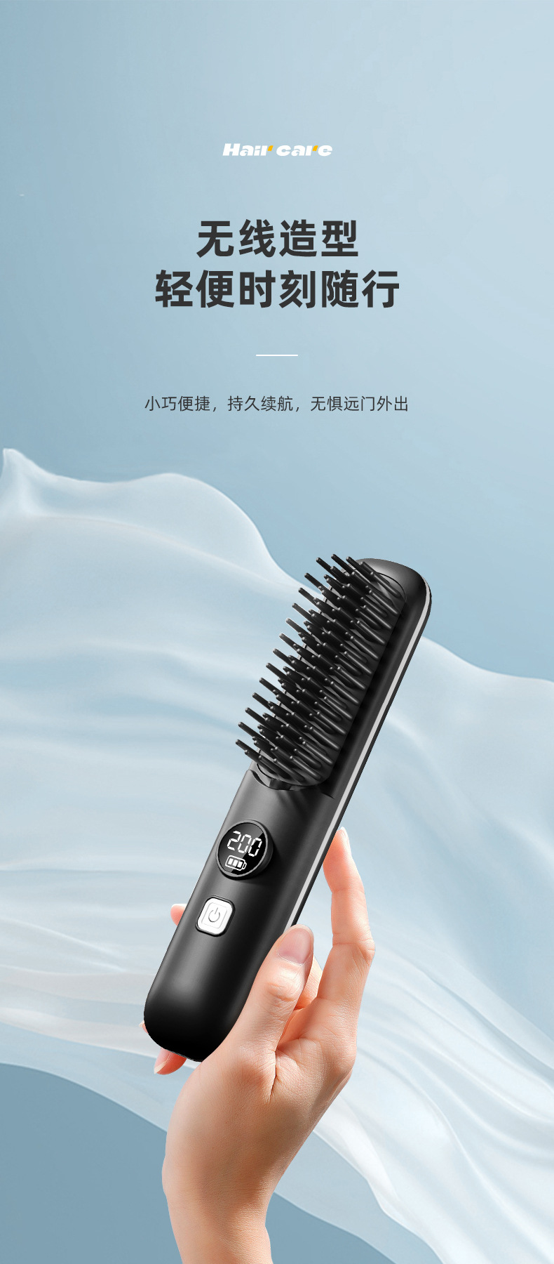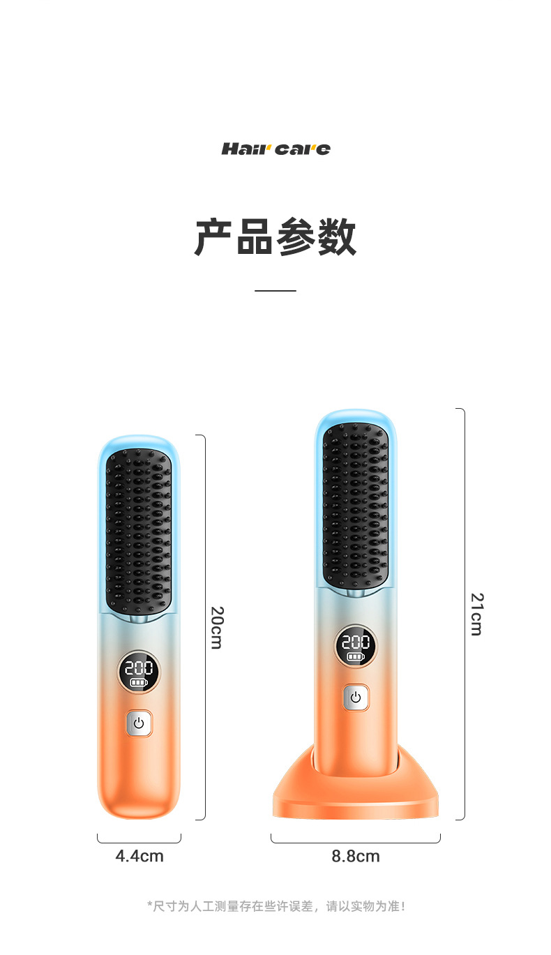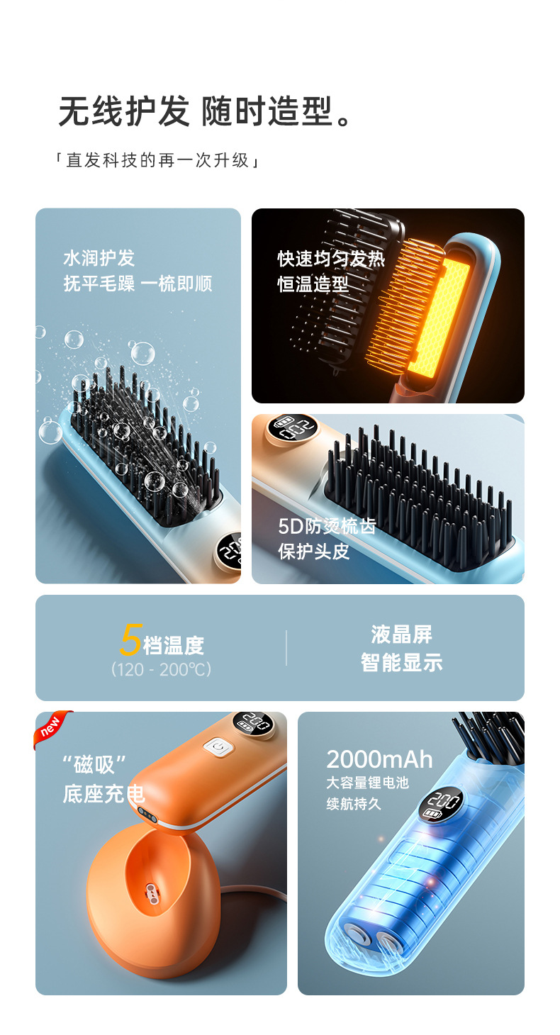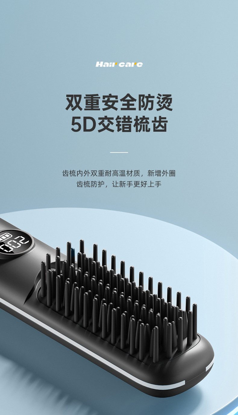跨境无线直发梳充电式迷你便携旅行数显直发器无线直卷两用直发梳